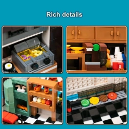 Objavte kúzlo ulíc plných vôní a svetiel s prepracovaným modelom retro food trucku. Strecha sa ľahko odklápa a odhaľuje autentickú kuchyňu s platničkou, fritézou, rúrou na pečenie a náradím. Vďaka tlačeným detailom zostáva vzhľad čistý a dlhodobo pôsobivý.