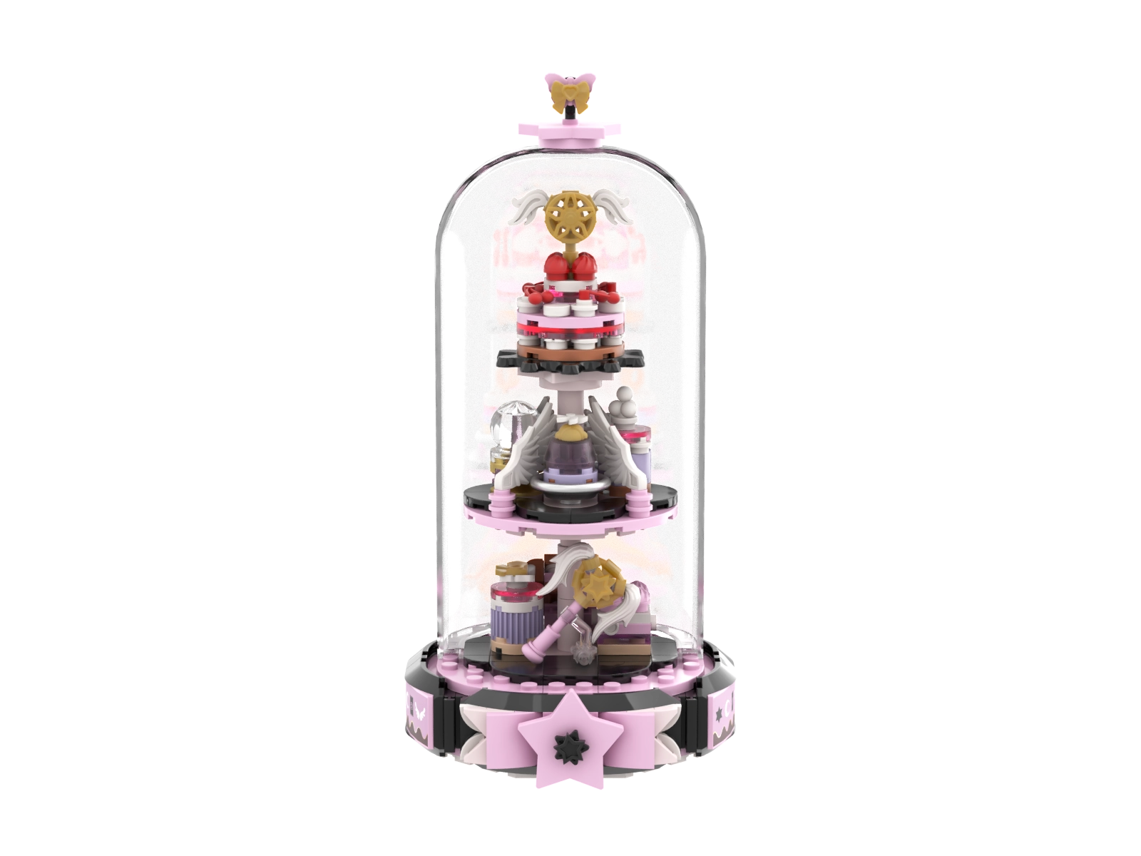 Pantasy Magical Girl je pôvabná stavebnica s 266 dielikmi, ktorá prepája čarovnú estetiku s precíznym spracovaním. Pod priehľadnou kupolou zostavíte trojposchodový stojan plný roztomilých dekorácií, hviezdičiek a sladkých detailov. Vďaka potlačeným dielikom bez samolepiek model dlhodobo vyzerá skvelo a je ideálny ako dekorácia aj darček pre deti od 6 rokov aj dospelých fanúšikov skladania.