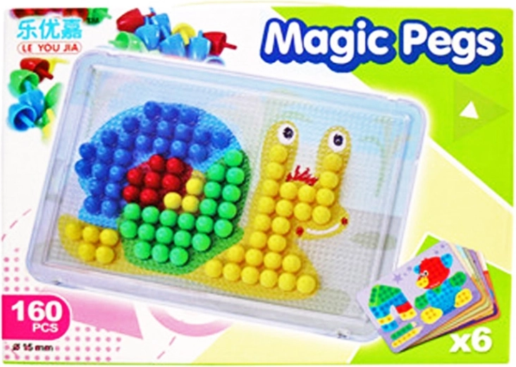 Súprava ponúka skvelú zábavu doma aj v škôlke. Pevná podložka udrží kolíky na mieste a 6 obrazových predlôh prináša rýchlu inšpiráciu. Všetko je z odolného materiálu, ktorý zvládne každodenné používanie.