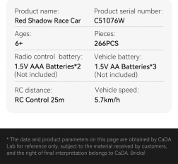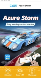 Stavebnica CaDA AZURE STORM spája kreatívne stavanie s rýchlou RC jazdou. Po zostavení získate detailný pretekársky voz s aerodynamickým tvarom, priehľadným kokpitom a športovými polepmi, pripravený na akčné závody doma aj vonku. Ovládanie je intuitívne a stabilné vďaka technológii 2,4 GHz a Bluetooth.