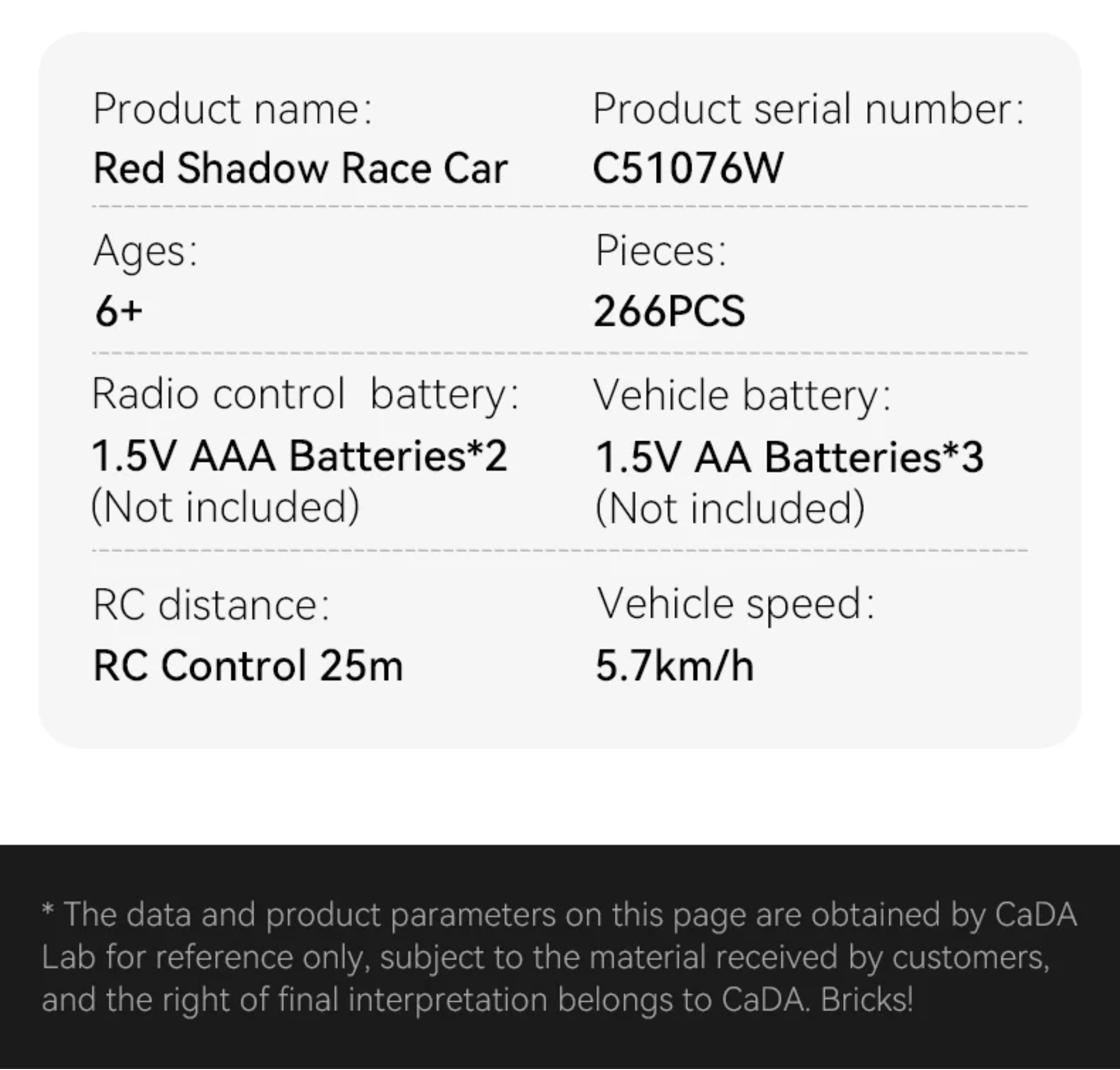 Pevná konštrukcia, detailný vzhľad a kompatibilita s ďalšími setmi CaDA. Podporuje jemnú motoriku a tvorivosť.