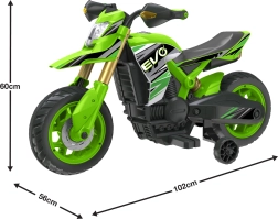 Štýlová detská elektrická motorka EVO Venom prináša bezpečnú zábavu pre malých pretekárov. Vďaka napájaniu 6V, až 60 minútam jazdy, maximálnej rýchlosti 3 km/h a svetelným efektom ponúka skvelý zážitok z jazdy. Stabilná konštrukcia, ergonomické stúpačky a intuitívne ovládanie zaisťujú pohodlie a bezpečie doma aj vonku.