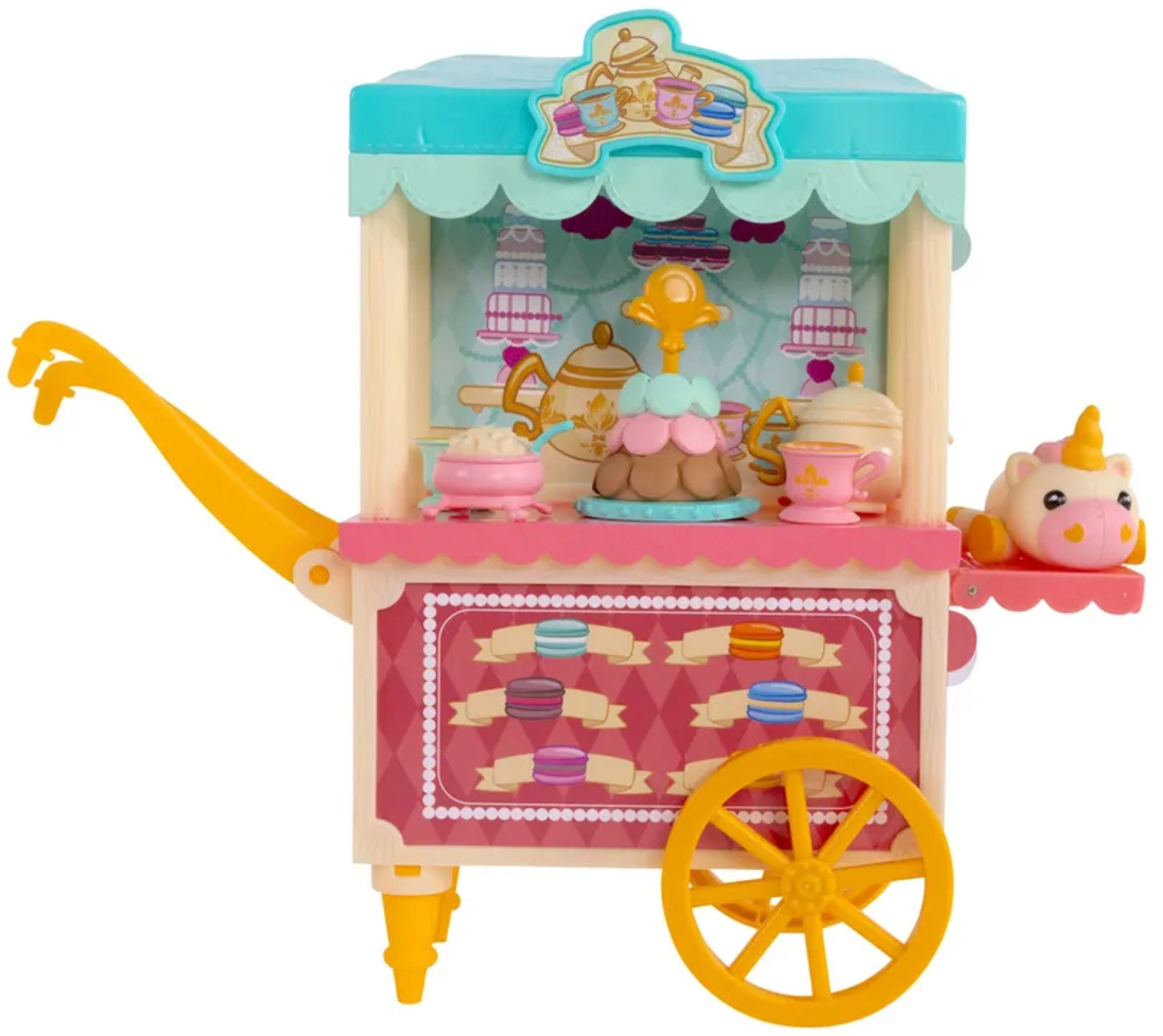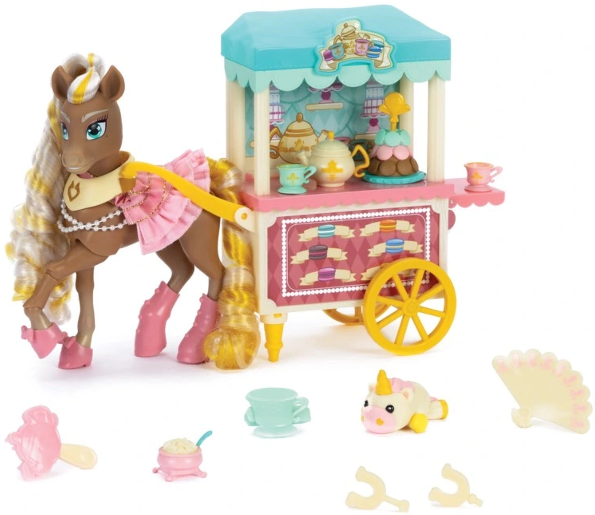 Súčasťou je veľký Tea & Treats vozík s dvojicou pojazdných kolies, kanvička s čajom, šálky, makronky na stojančeku a ďalšie roztomilé drobnosti. Vozík možno pomocou oje pripnúť k poníkovi a vyraziť za zábavou. Vďaka klipsom v tvare podkovy môže Cherie pevne držať vybrané doplnky.