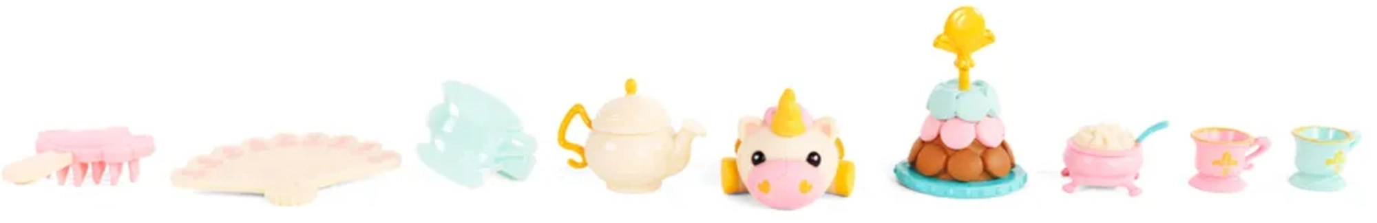 V balení nájdete čajovú súpravu, dezerty, hrebeň, malého jednorožca a ďalšie drobnosti na rozmanité scénky.