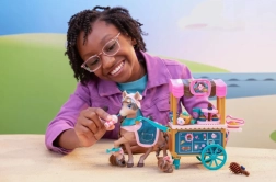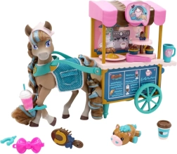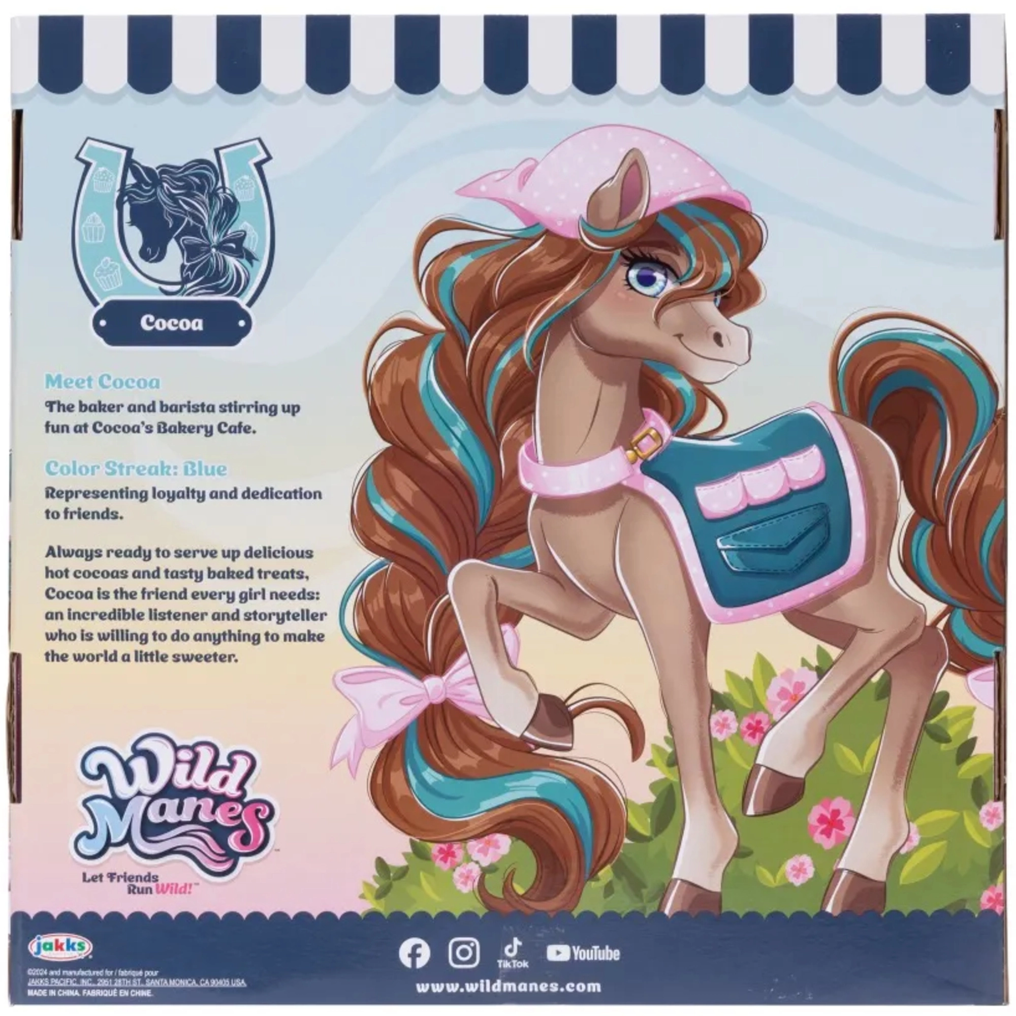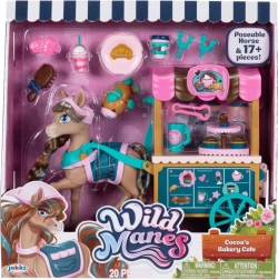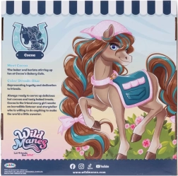 Koník Cocoa z obľúbeného seriálu WILD MANES prichádza s prepracovaným vozíkom Bakery Café, kde môže servírovať nápoje a zákusky. Figúrka má detailne spracovanú hrivu s vrkočmi, výrazné oči a nosí štýlovú zásteru – pripravená na každé dobrodružstvo. Vďaka klipom v tvare podkovy môže Cocoa držať doplnky a jednoducho tak hrať rôzne scénky.