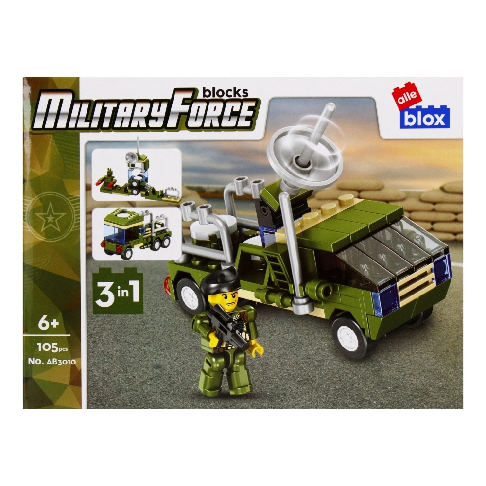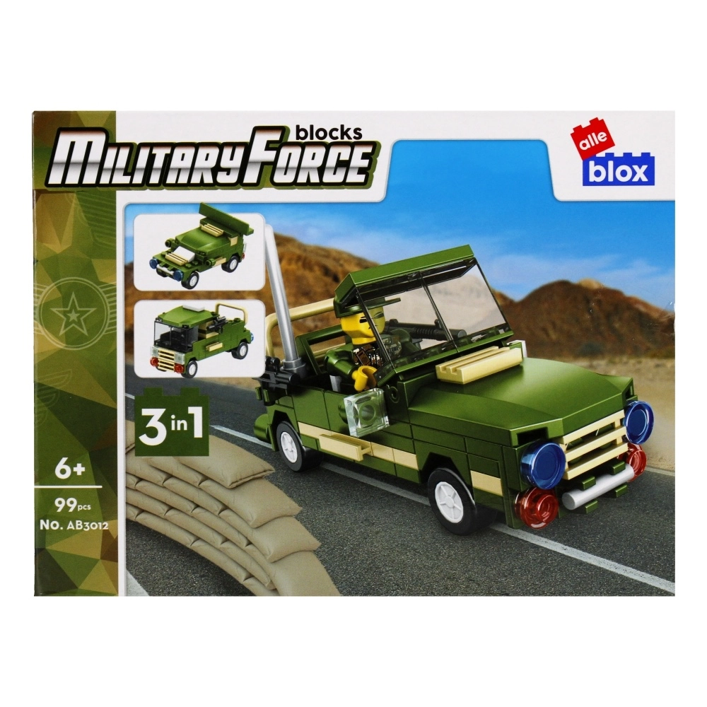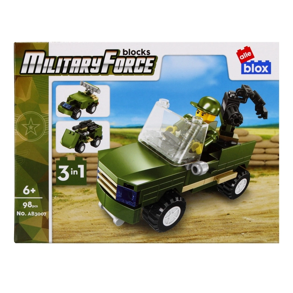 Akčná stavebnica s vojenským vozidlom a figúrkou prináša deťom hodiny zábavy a rozvoja kreativity. Na výber je z 8 variantov, každá obsahuje 96–104 dielikov a montážny návod. Kompaktné prevedenie s rozmermi 15 × 7 × 8 cm je ideálne domov aj na cesty. Vhodné pre deti od 6 rokov. Cena je za 1 kus.