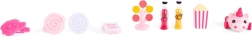 Popcorn, lízanky, nápoje a ďalšie drobnosti pre realistické hranie. Nechýba kefka a sponky na styling hrivy.