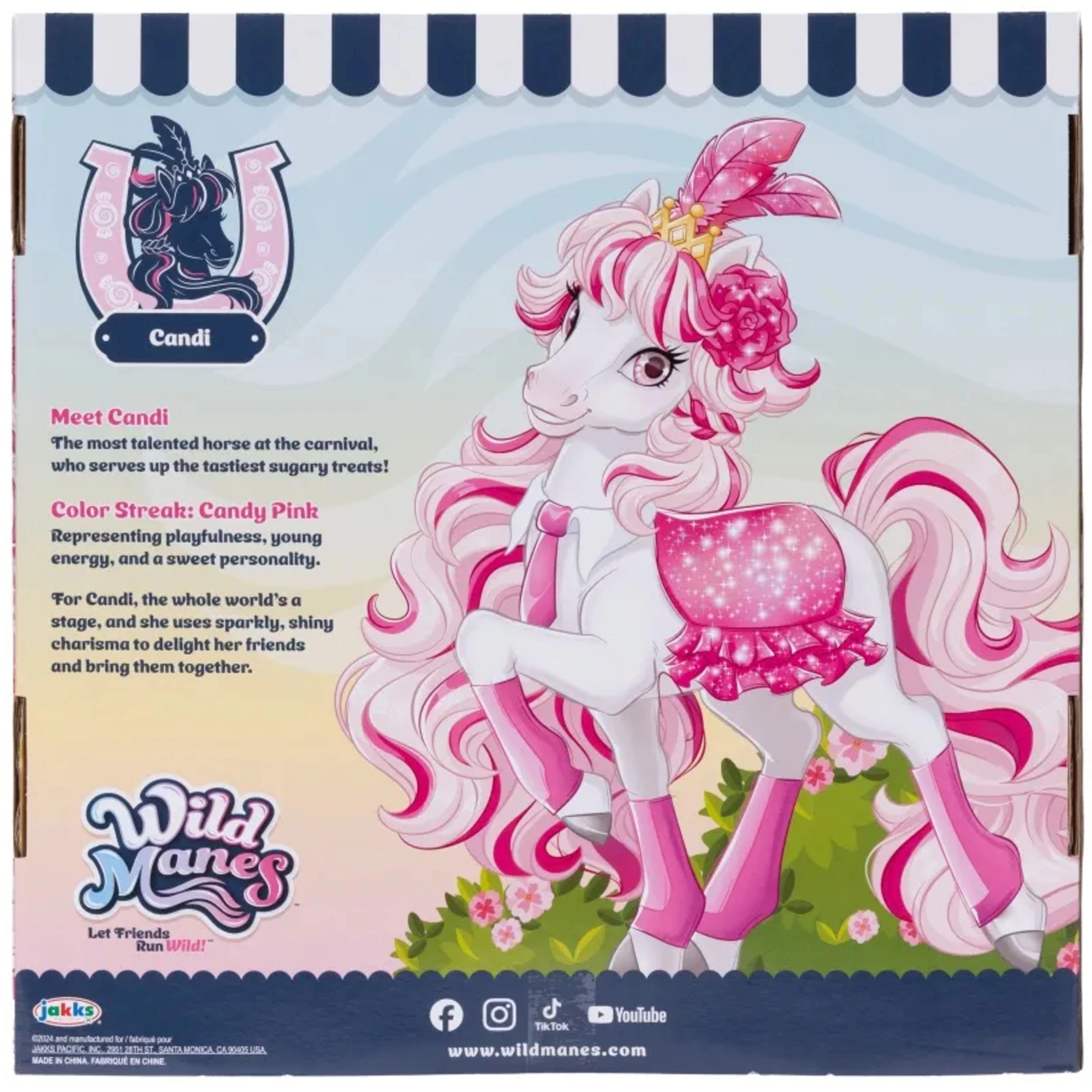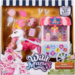 Jednorožec Candi očarí bielym telíčkom, ružovou hrivou a chvostíkom, trblietavou korunkou a štýlovým oblečkom. Vďaka pohyblivým končatinám možno figúrku ľahko nastaviť do rôznych póz a znovu prežívať obľúbené scény zo sveta WILD MANES.