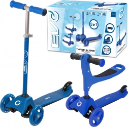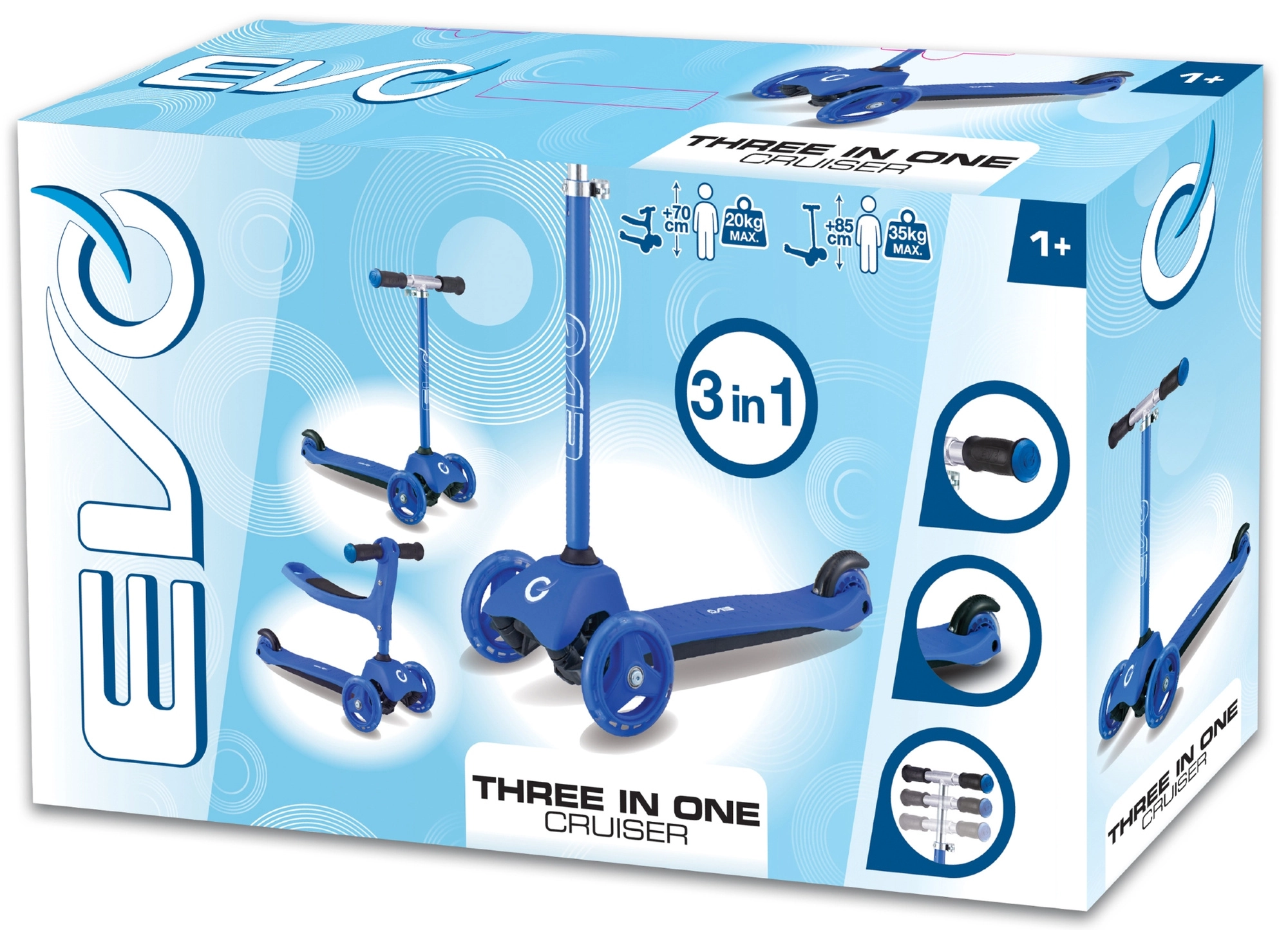 Kolobežka EVO 2v1 rastie s dieťaťom: začnite v režime odrážadla so sedadlom pre istý štart a neskôr prejdite na klasickú trojkolovú kolobežku. Dve veľké predné kolesá zabezpečujú výbornú stabilitu, spôsob riadenia lean-to-steer podporuje prirodzené učenie rovnováhy a protišmykový nášľap dodáva istotu na každom metri.