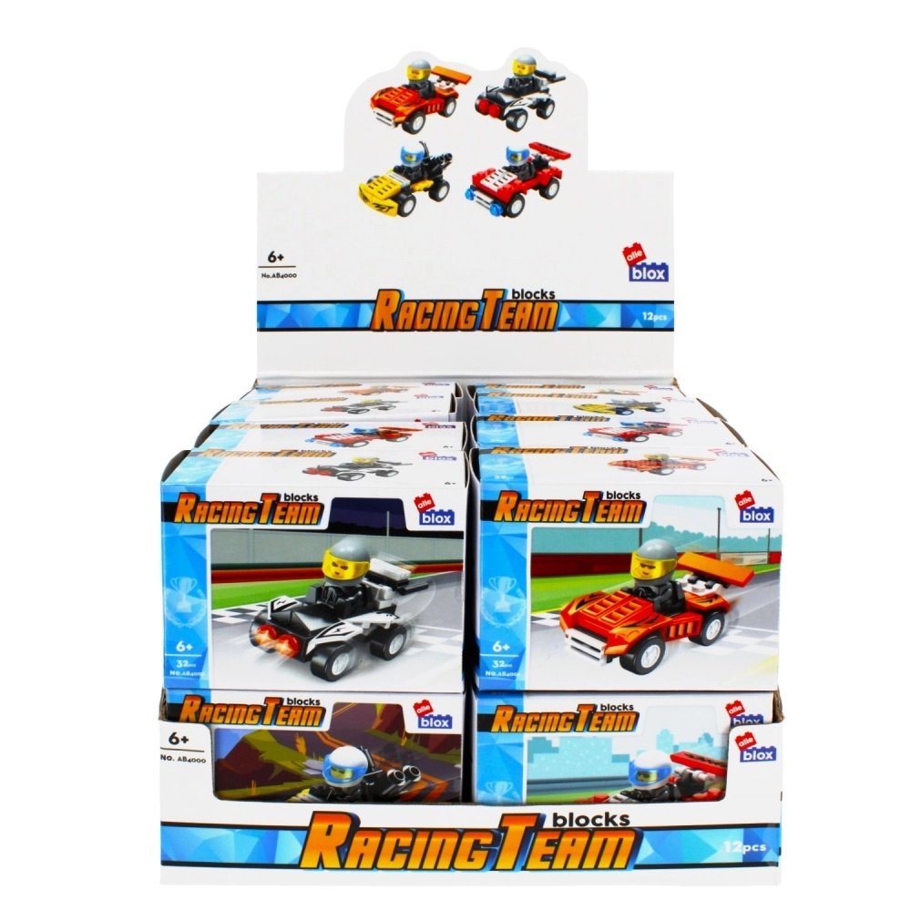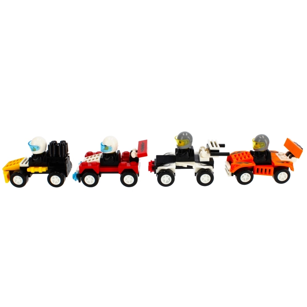 Na výber sú 4 atraktívne dizajny (rôzne farby a detaily), ktoré skvele vyzerajú na poličke aj na domácej pretekárskej dráhe. Autíčka sú kompatibilné s bežnými stavebnicami podobného typu, takže možno ľahko rozšíriť výbavu alebo si vytvoriť vlastný tím.
