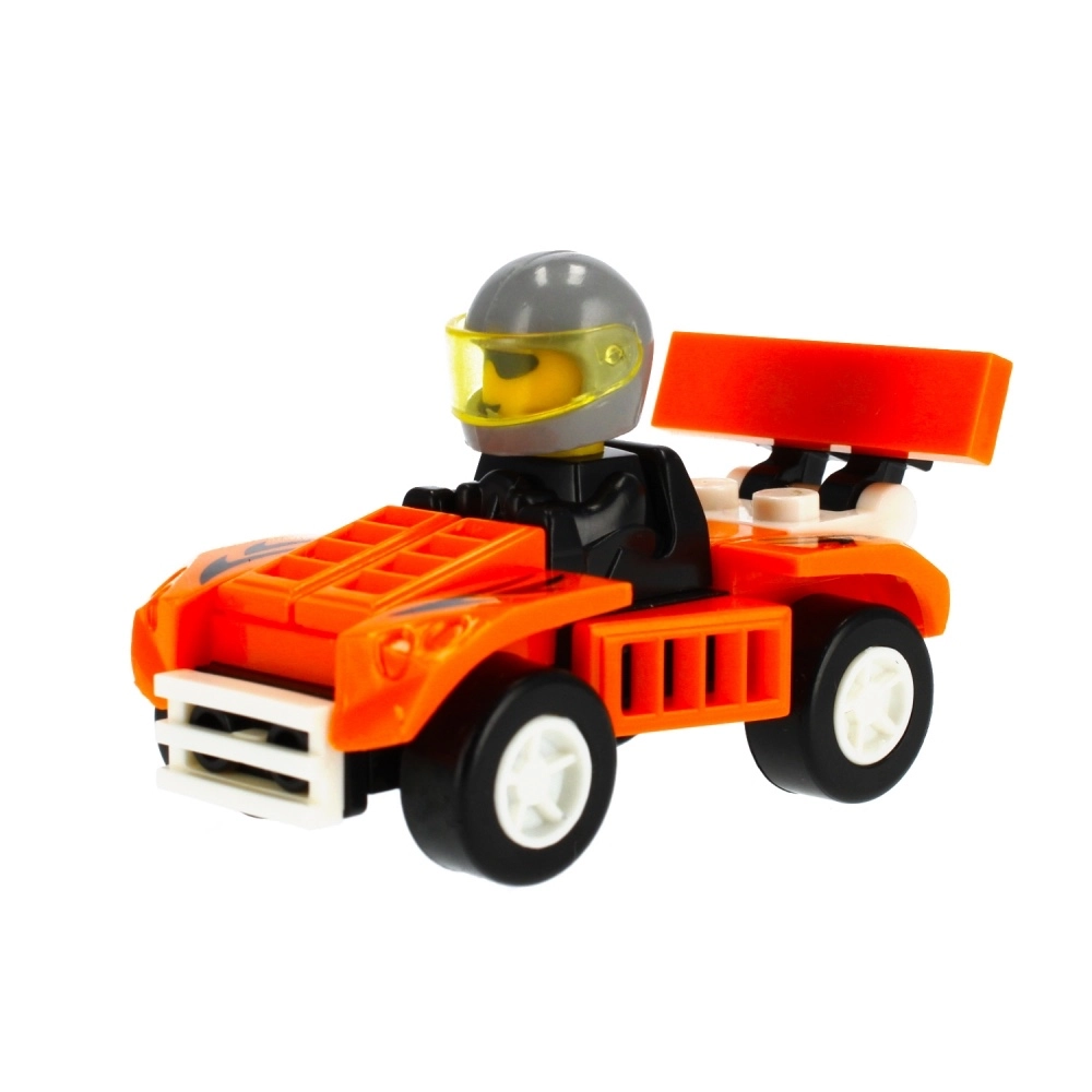 Táto malá, ale premyslená stavebnica pretekárskeho auta prináša rýchlu zábavu pre malých aj väčších staviteľov. Každé balenie obsahuje všetko potrebné na zostavenie funkčného autíčka s vodičom – od pevných kociek až po návod. Kompaktné rozmery pritom zaručujú, že si s modelom užijete veľa akcie aj na malom priestore.