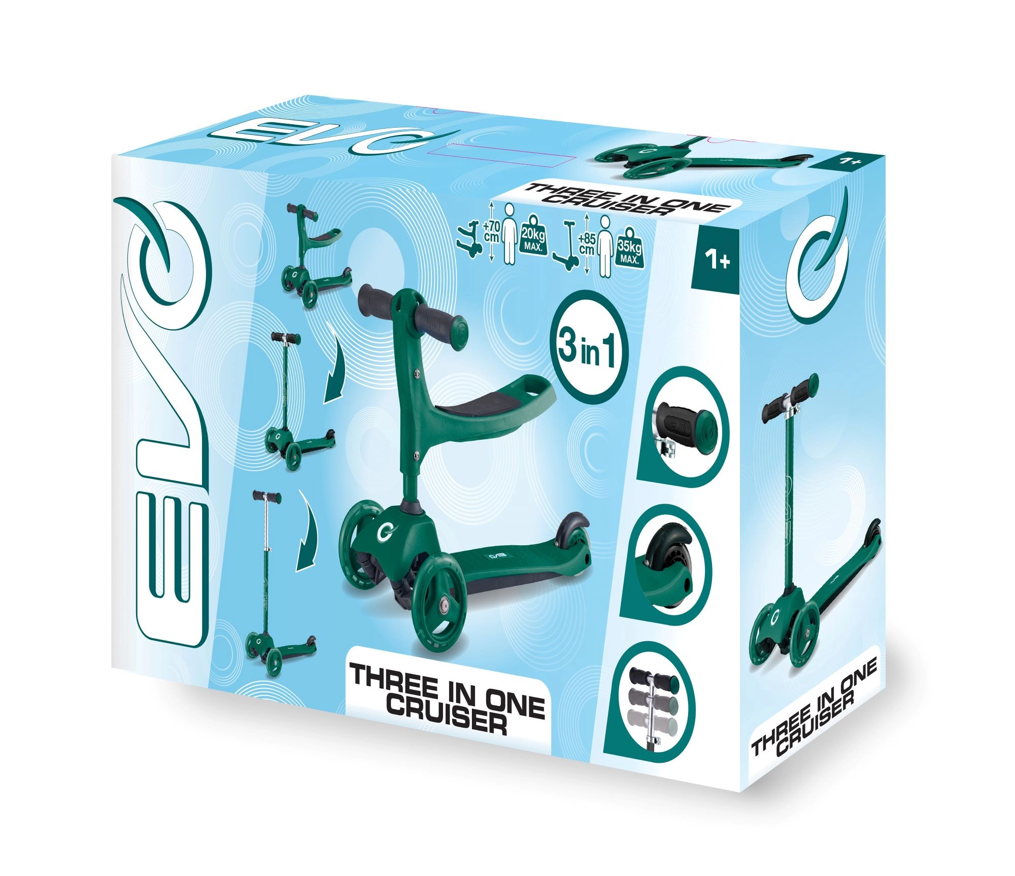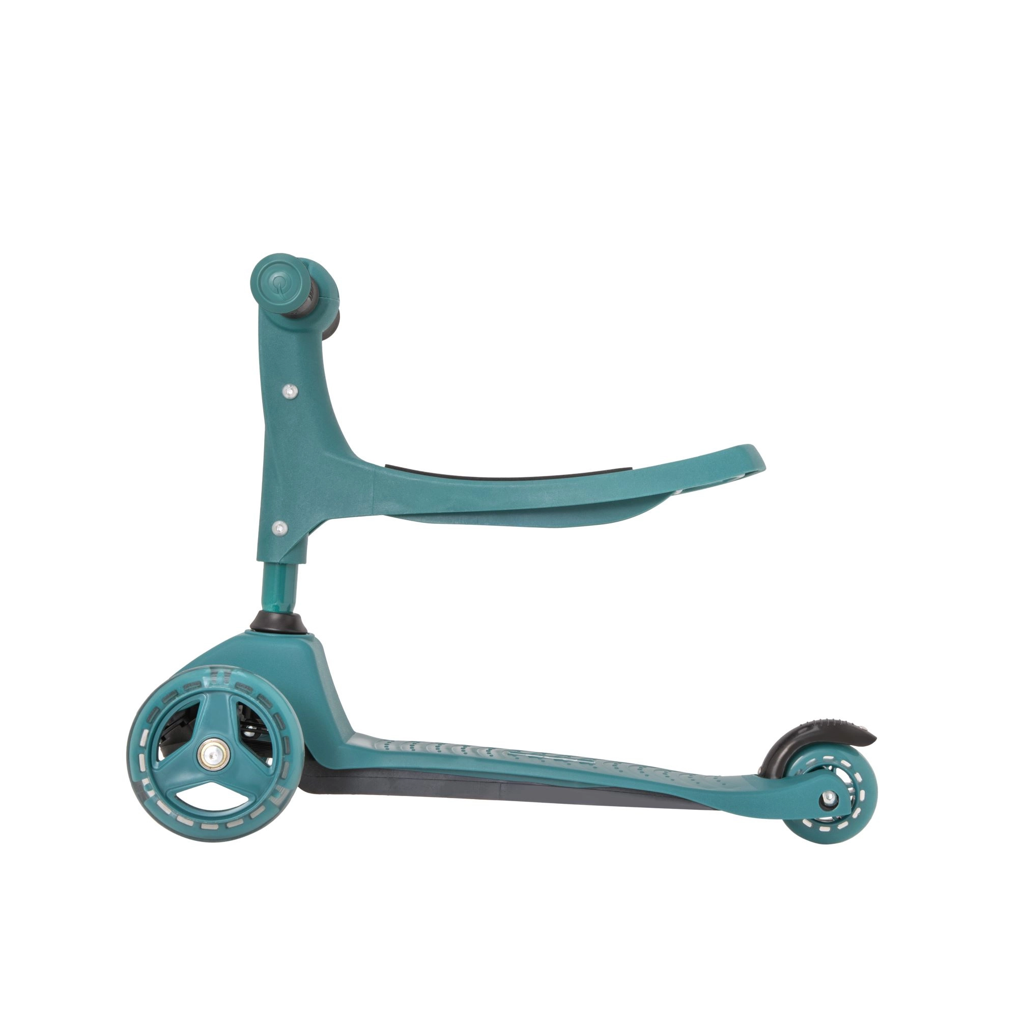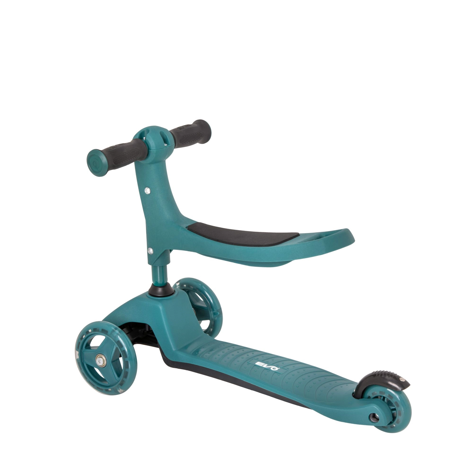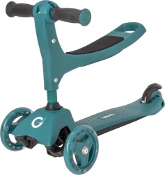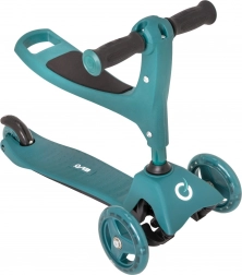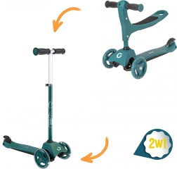 Táto šikovná trojkolová kolobežka 2v1 sa behom chvíľky premení z odrážadla so sedadlom na klasickú kolobežku. Vďaka regulovateľným riadidlám (cca 40 cm v režime odrážadla a 62–72 cm v režime kolobežky) rastie s dieťaťom a poskytuje istotu pri prvých jazdách aj neskôr pri svižnejšom odrážaní.
