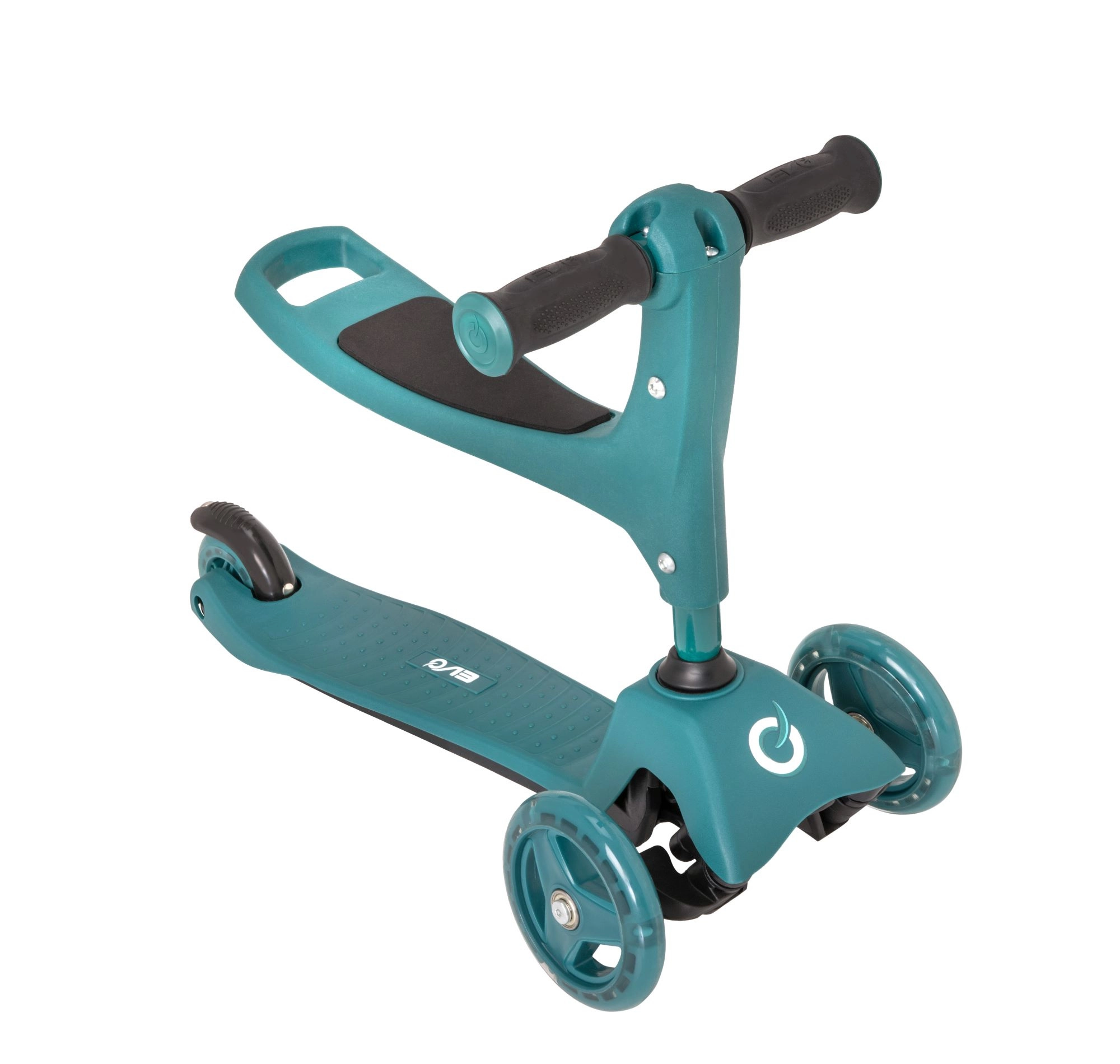 Doprajte deťom stabilnú a zábavnú jazdu s kolobežkou 2v1 od značky EVO – spája odrážadlo a kolobežku v jednom. Vďaka trom kolesám, širokému nášľapu a nastaviteľnej výške riadidiel podporuje rovnováhu a koordináciu už od 1 roka. Dvojité predné kolesá, tiché ložiská ABEC-5 a nožná brzda na zadnom blatníku zabezpečujú bezpečnú a plynulú jazdu.