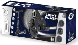 Detská kolobežka EVO Light Flash je ľahká, skladacia a má nastaviteľné riadidlá pre deti od 5 rokov. Ponúka tiché gumené kolieska s ložiskami ABEC-5, nožnú brzdu na zadnom blatníku a zábavnú svietiacu podestu na 4× AAA batérie. Ideálna na rekreačnú jazdu po rovnom povrchu s dôrazom na stabilitu a bezpečnosť.