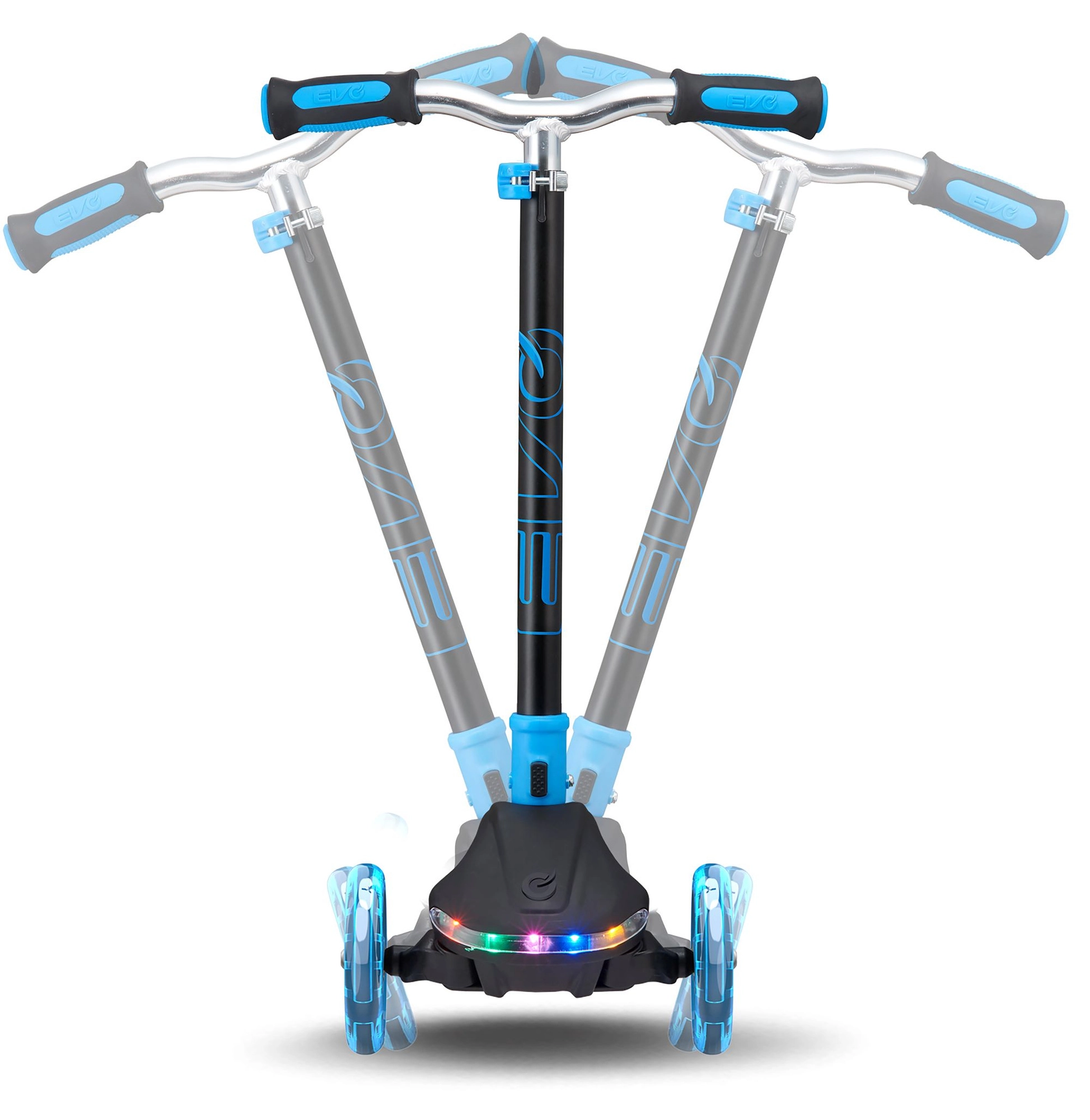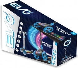 Ľahká detská trojkolová kolobežka EVO Rainbow Blast s výškovo nastaviteľnými riadidlami a širokým stabilným podvozkom je ideálna pre malých jazdcov od 3 rokov. Ponúka lean-to-steer ovládanie náklonom, dve veľké predné kolesá pre stabilitu, tiché ložiská ABEC-5 a zadnú nášľapnú brzdu. O zábavu a viditeľnosť sa starajú multicolor LED svetlá v podlahe aj v svietiacich predných kolesách.