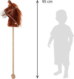Hobby horse BABY MIX Brown spája klasickú detskú zábavu s modernými prvkami. Mäkká plyšová hlava s uzdou a hrivou láka na maznanie, zatiaľ čo zvukové efekty dodávajú hre autentickosť. Vďaka kolieskam na konci drevenej palice môžu deti koníka ľahko viesť po rôznych povrchoch.