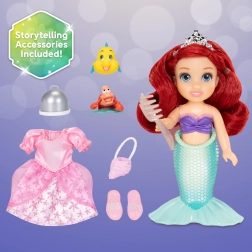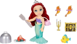 Obľúbená hrdinka z animácie DISNEY Malá morská víla prichádza v rozkošnej 16 cm verzii. Ariel má pohyblivé ruky, hlavu aj boky, takže ľahko zaujme rôzne pózy. Súčasťou je bohaté príslušenstvo na hru na mori aj na súši: vymeniteľný chvost a top, ružové šaty, topánky, tiara, hrebeň – „dinglehopper“, mušľová kabelka, strieborná servírovacia kupola a drobné postavičky kamarátov.