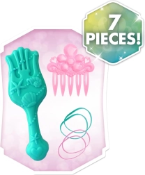 V balení nájdete 7 doplnkov na tvorbu účesov: kefu, hrebeň a gumičky do vlasov. Deti môžu trénovať česanie, pletenie vrkôčikov a zdobenie účesov, čo rozvíja ich koordináciu oko–ruka, predstavivosť a kreativitu. Ideálne na každodennú hru aj ako darček pre fanúšikov rozprávky Malá morská víla.