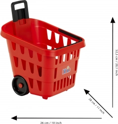 Tento červený nákupný vozík pre deti verne napodobňuje skutočný obchodný košík a podnecuje kreatívnu hru na predavača aj zákazníka. Konštrukcia je ľahká, no pevná a odolná, takže vozík zvládne každodenné domáce „nákupy“ aj dlhé hodiny hrania.