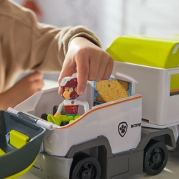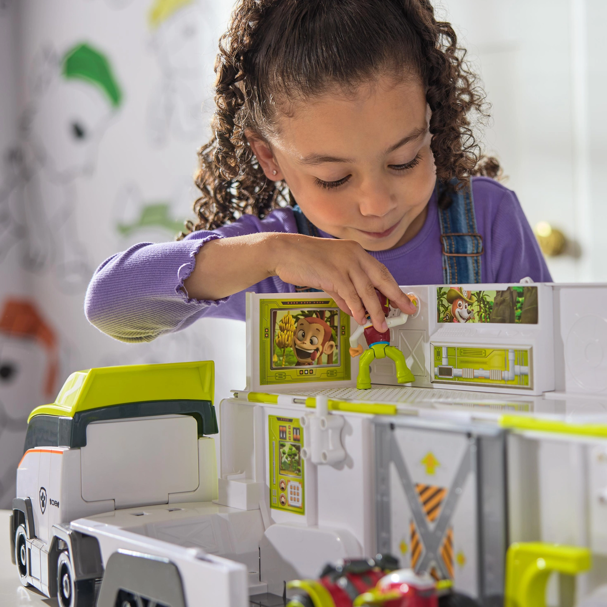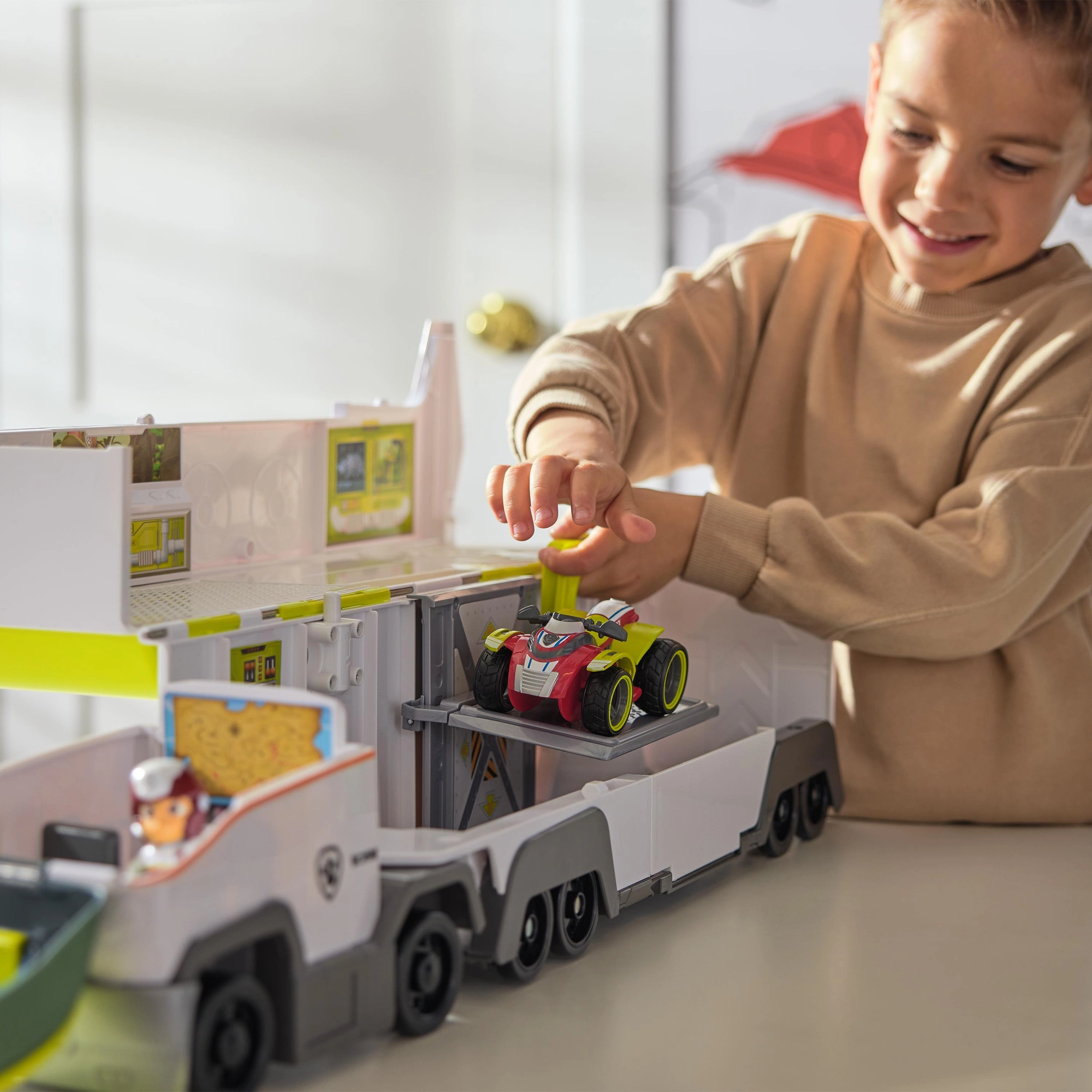 Transportér sa otvorí do priestrannej hernej stanice s panelmi, rampami a miestom pre figúrky a vozidlá. Ideálne na rýchle nasadenie celej partie z PAW Patrol.