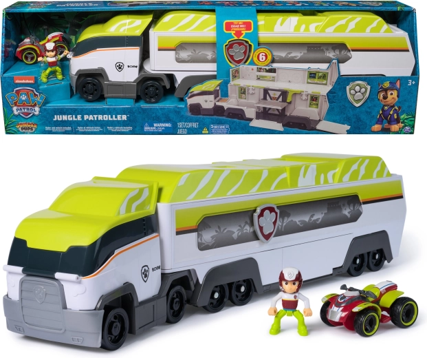 Jungle Patroller je impozantný, približne 69 cm dlhý transportér, ktorý sa otvorí do priestrannej hernej základne. Vnútorný modul s výťahovou plošinou presunie Rydera s ATV na vyššiu úroveň a pripraví scénu pre napínavé záchranné akcie. Vďaka zvukovým efektom na stlačenie odznaku či komunikačného tlačidla pôsobí každá misia ešte dynamickejšie.