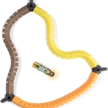 Mikrorobot s priesvitným žltým telom svieti a vďaka vibráciám svižne „pobehuje“ po trati aj po rovnom povrchu. Zábavné svetelné efekty lákajú k hre.