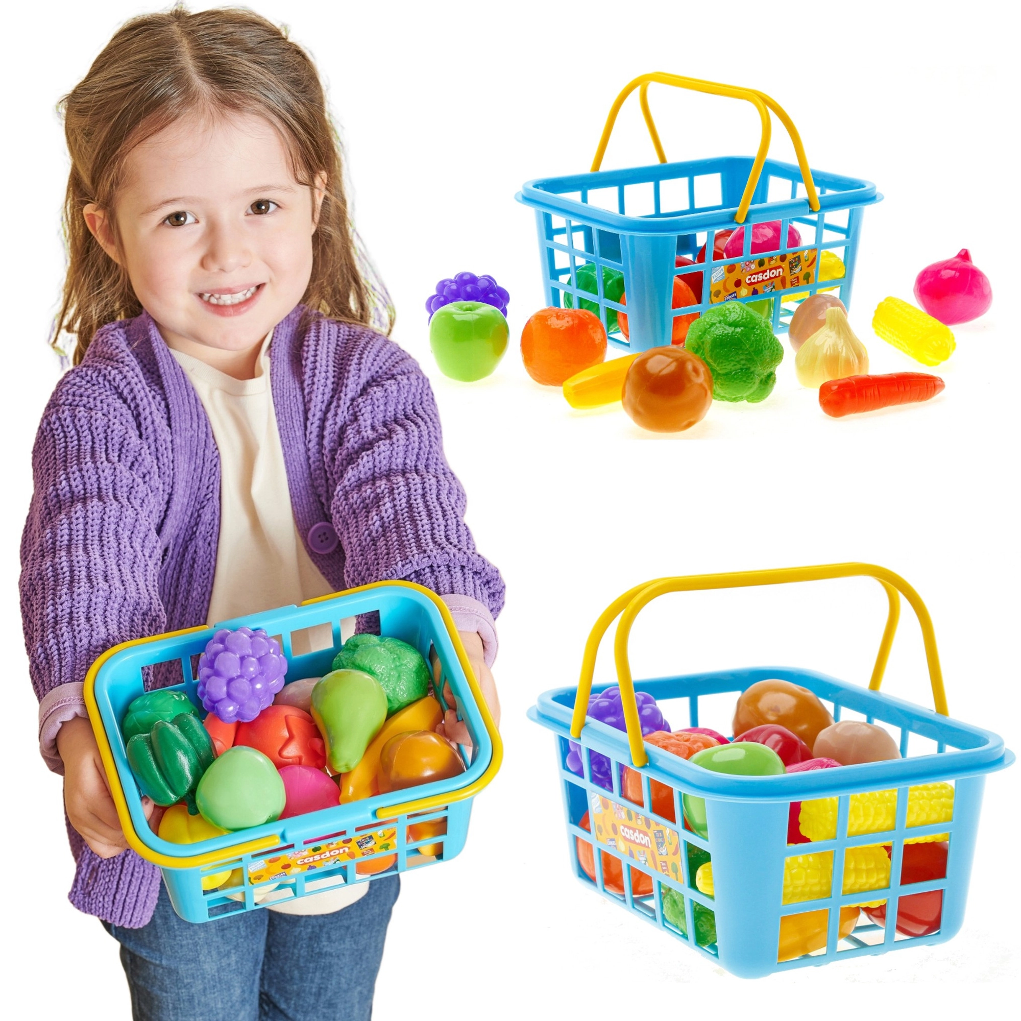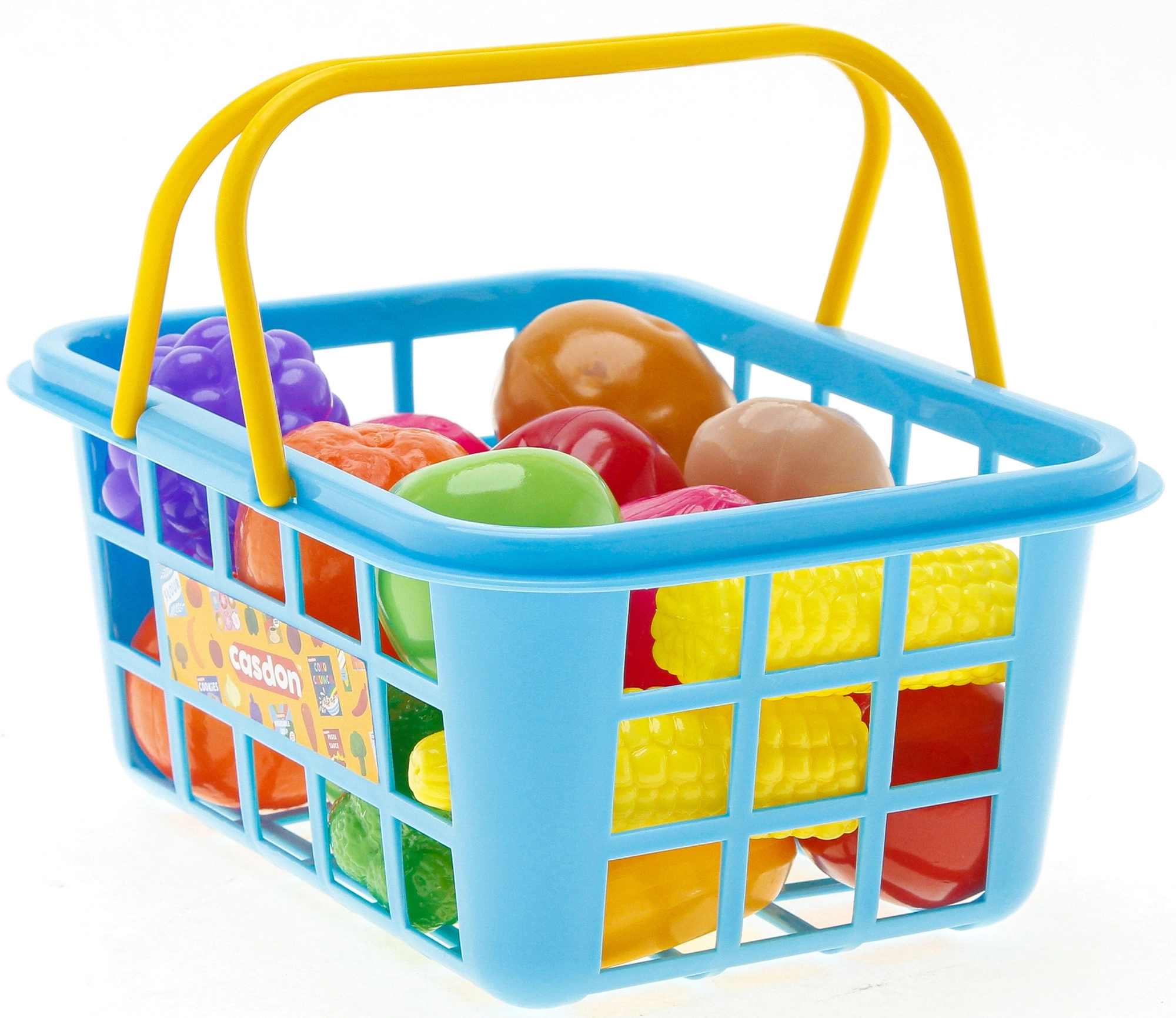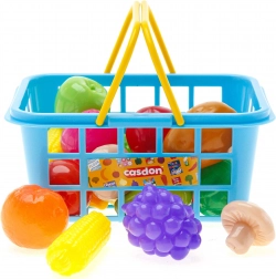 Realistická hra na obchod s košíkom CASDON prináša deťom množstvo zábavy a učenia. Ľahký košík v modrej farbe so žltými sklápacími ušami sa ľahko nosí a vďaka množstvu farebných potravín podnecuje predstavivosť aj komunikáciu.