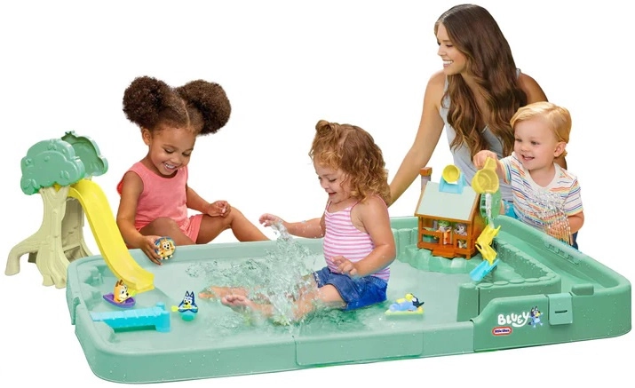 Vodný stôl BLUEY Bushland Adventures je ideálny na spoločnú hru viacerých detí. Otvorené herné zóny, integrovaná šmýkačka, strom a chatka s funkčným vodným kolesom podporujú kreativitu, rozvoj jemnej motoriky aj sociálnych zručností. Kanáliky a priehrady umožnia smerovať prúd vody a vytvárať fontánky (možnosť pripojenia hadice), takže každá hra je iná.