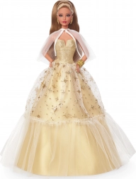 Elegantná zberateľská bábika BARBIE k 35. výročiu žiari v saténových šatách v odtieni šampanské s tüllovou sukňou posiatou zlatými hviezdami. Nechýba plisovaná priesvitná pelerína, zlaté šperky a precízne detaily líčenia aj manikúry. Ideálny vianočný darček a skvost každej kolekcie.