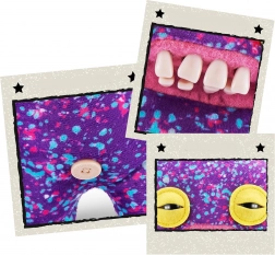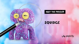 Plyšák FUGGLER Squidge od značky Spin Master zaujme na prvý pohľad svojím nezvyčajným vzhľadom. Fialové telo zdobia kontrastné škvrny v modrých a ružových tónoch, ktoré vytvárajú umelecký až abstraktný efekt. Dominantou je komicky strašidelný chrup, ktorý dodáva hračke osobitý šarm a humor.