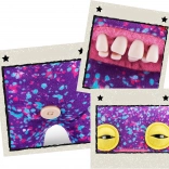 Fialový povrch s modro-ružovými škvrnami a ikonickými zubami robí z každého FUGGLER jedinečný kúsok, ktorý si okamžite získa pozornosť.