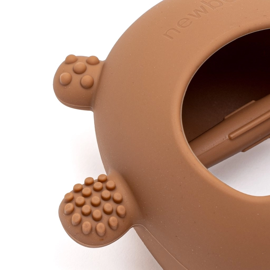 Hryzátko New Baby Trendy je navrhnuté pre pohodlné uchopenie a jemnú masáž ďasien. Minimalistický vzhľad v karamelovo hnedom odtieni sa hodí ku každému outfitu aj kočíku, takže je praktické aj štýlové zároveň.