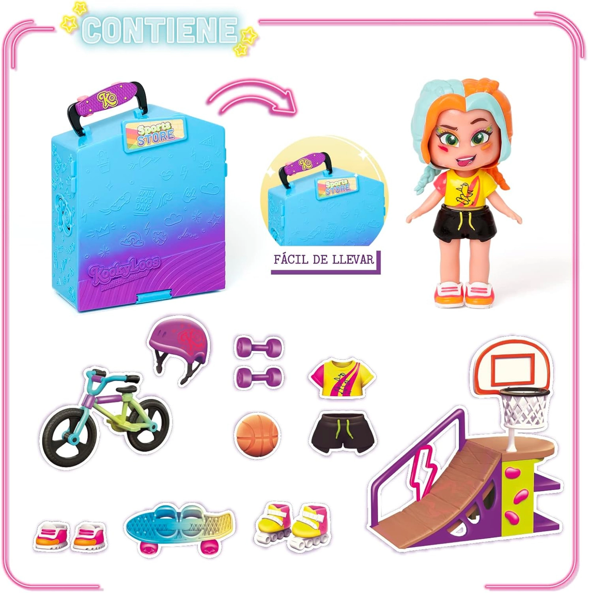 Figúrka KookyLoos od Magic Box prináša zábavu, štýl a výraznú osobnosť v jednom. Exkluzívna Lizzie je pripravená na športové dobrodružstvá – s pohyblivými kĺbmi, mechanizmom na zmenu výrazu a skvelými doplnkami si deti vytvoria vlastné príbehy plné akcie a fantázie. Otvárací kufrík sa premení na mini športový obchod s bicyklami, korčuľami a skateboardom.