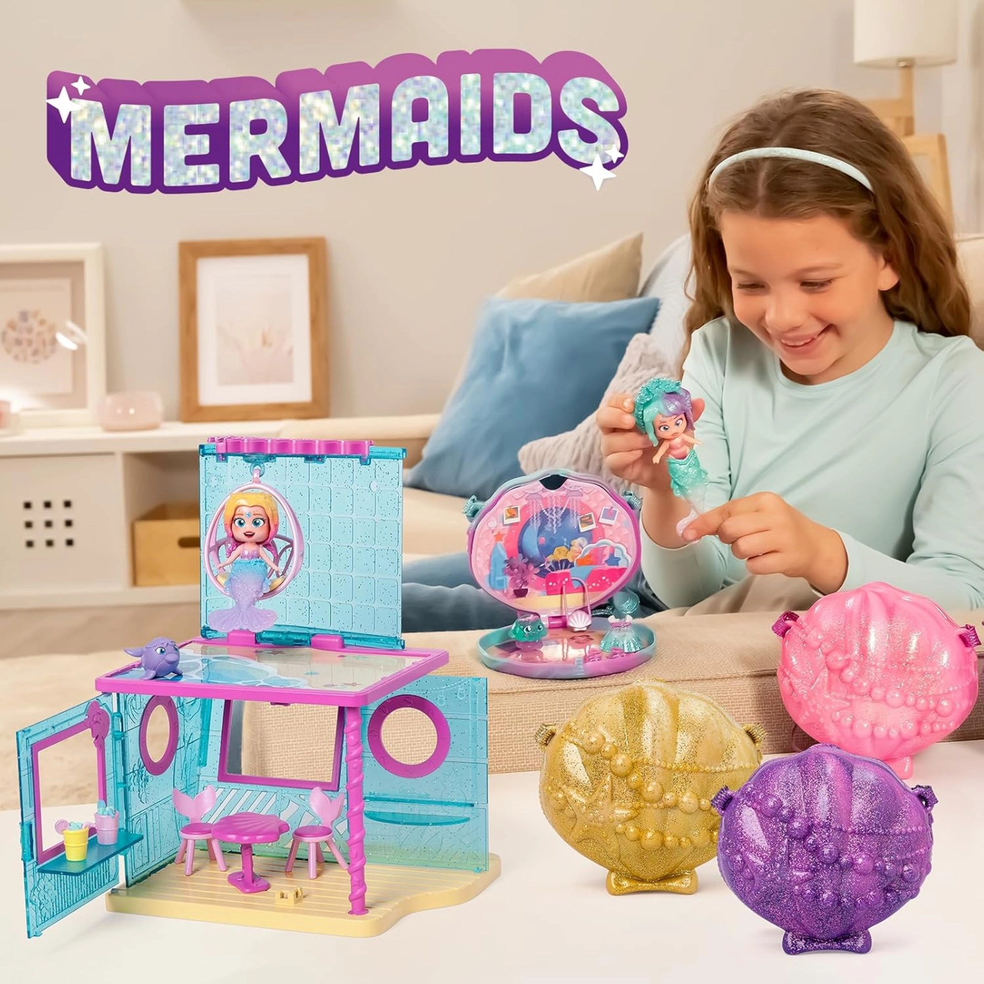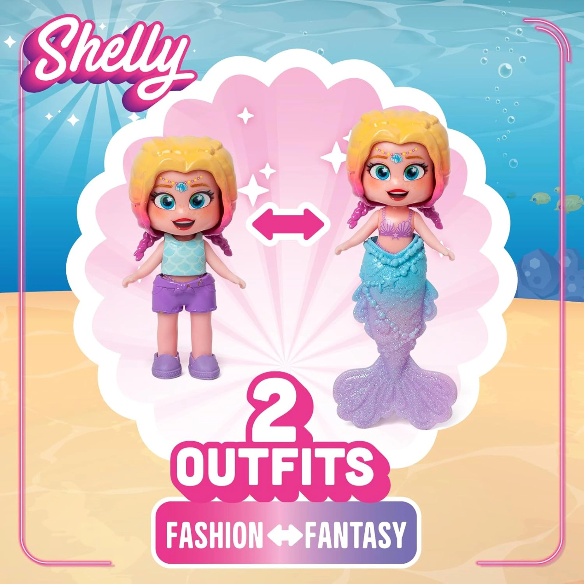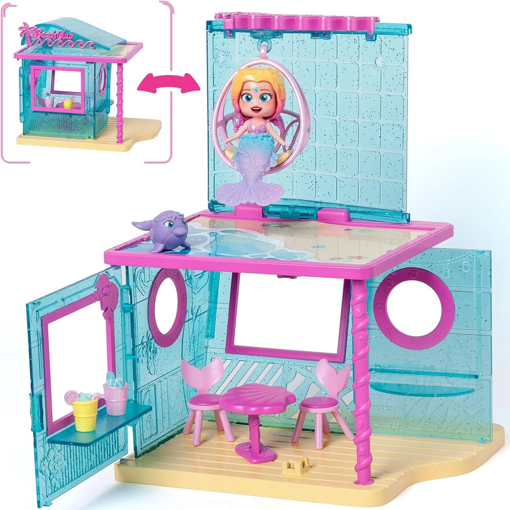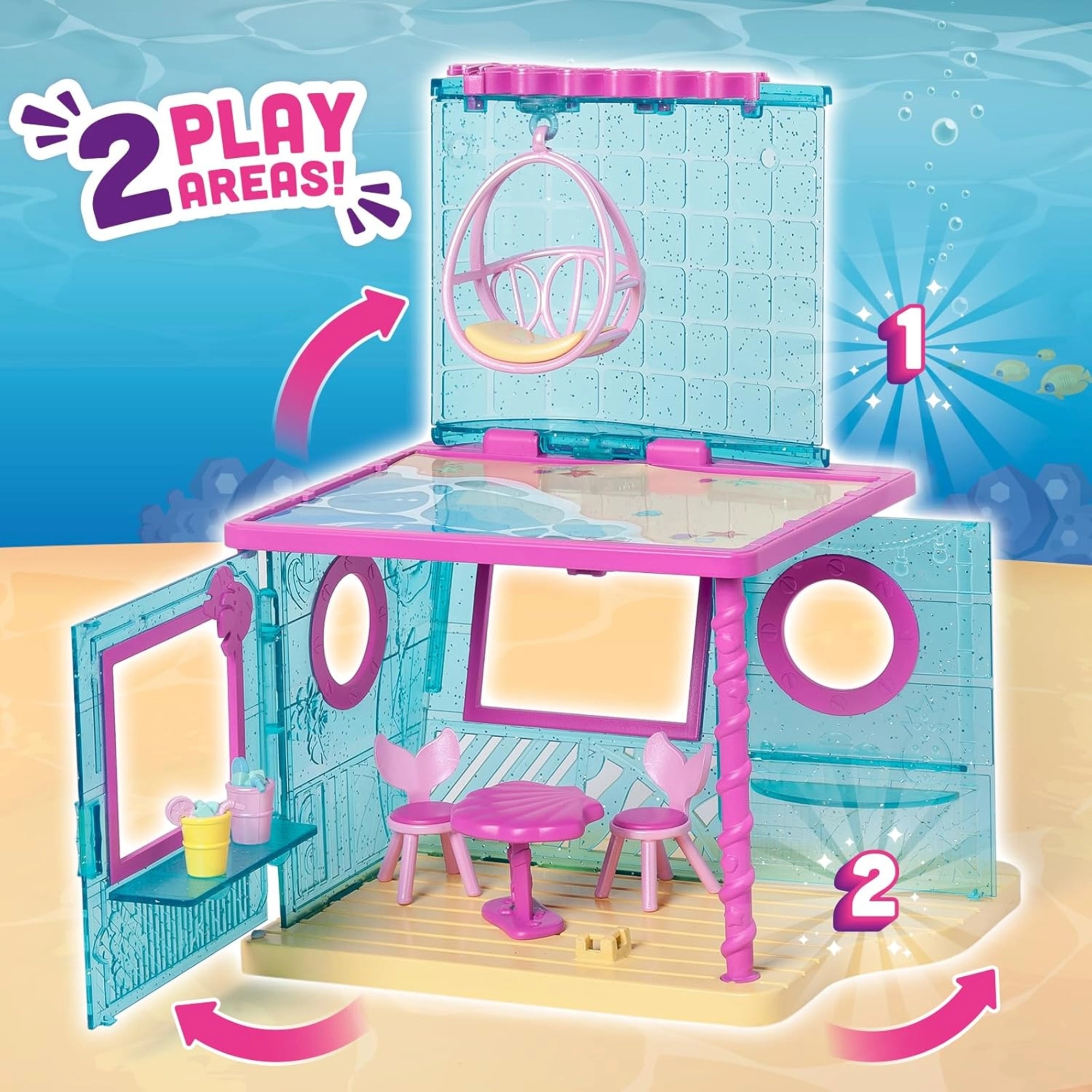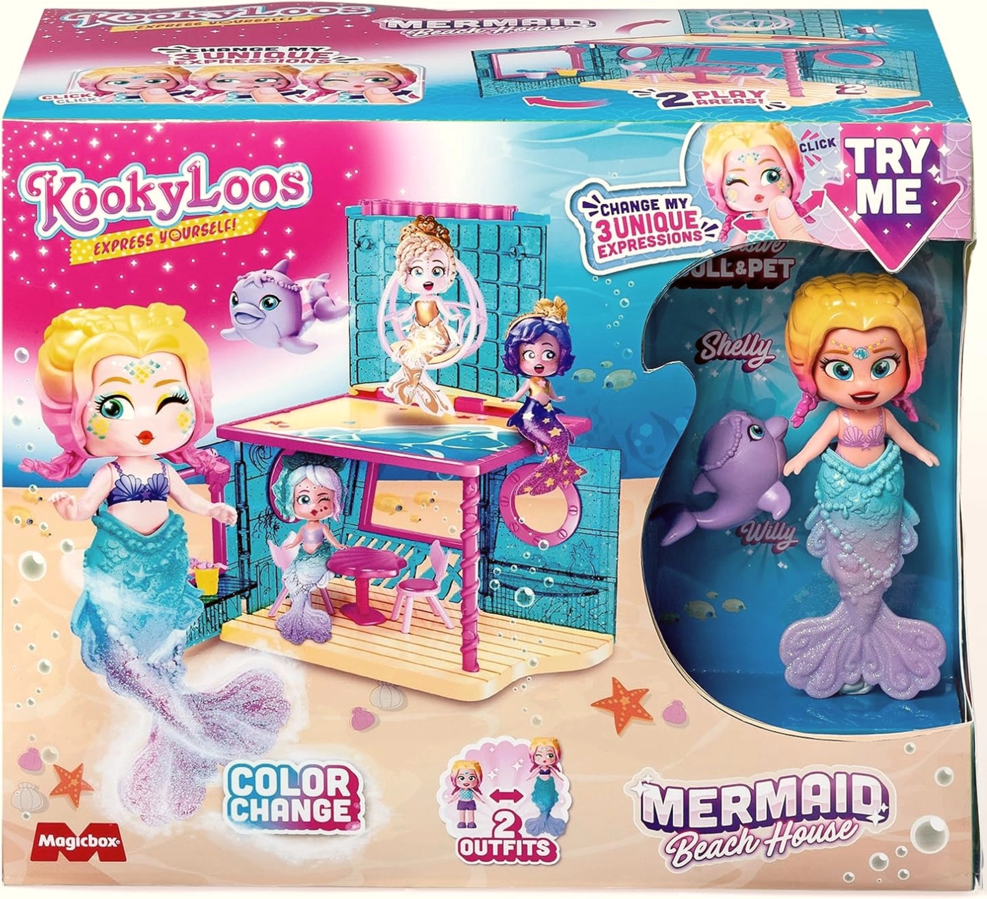Vstúpte do podmorského sveta s KookyLoos MERMAID – roztomilou morskou pannou Shelly, ktorá má pohyblivé kĺby, 3 výrazy tváre a efektný trblietavý chvost. Otvorte plážový domček pre morské panny, vyzdobte si ho podľa seba a užite si nekonečné príbehy s verným kamarátom – delfínikom.