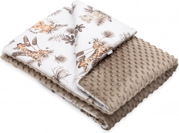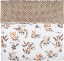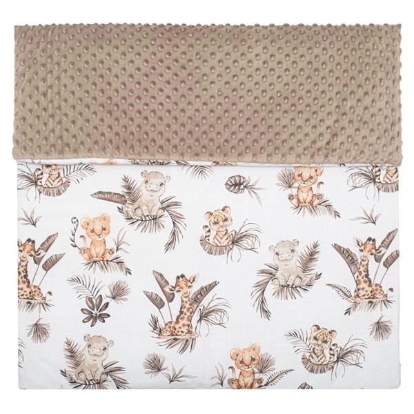 Obojstranná deka Safari prináša deťom pohodlie a zmyslovú stimuláciu. Jedna strana je z hebkej látky minky s 3D výstupkami pre jemnú senzomotorickú stimuláciu, druhá zo 100 % bavlny s originálnymi obrázkami, ktoré rozvíjajú fantáziu aj vnímanie farieb a tvarov. Vďaka antialergickej výplni je deka mäkšia, teplejšia a vhodná na celoročné použitie.