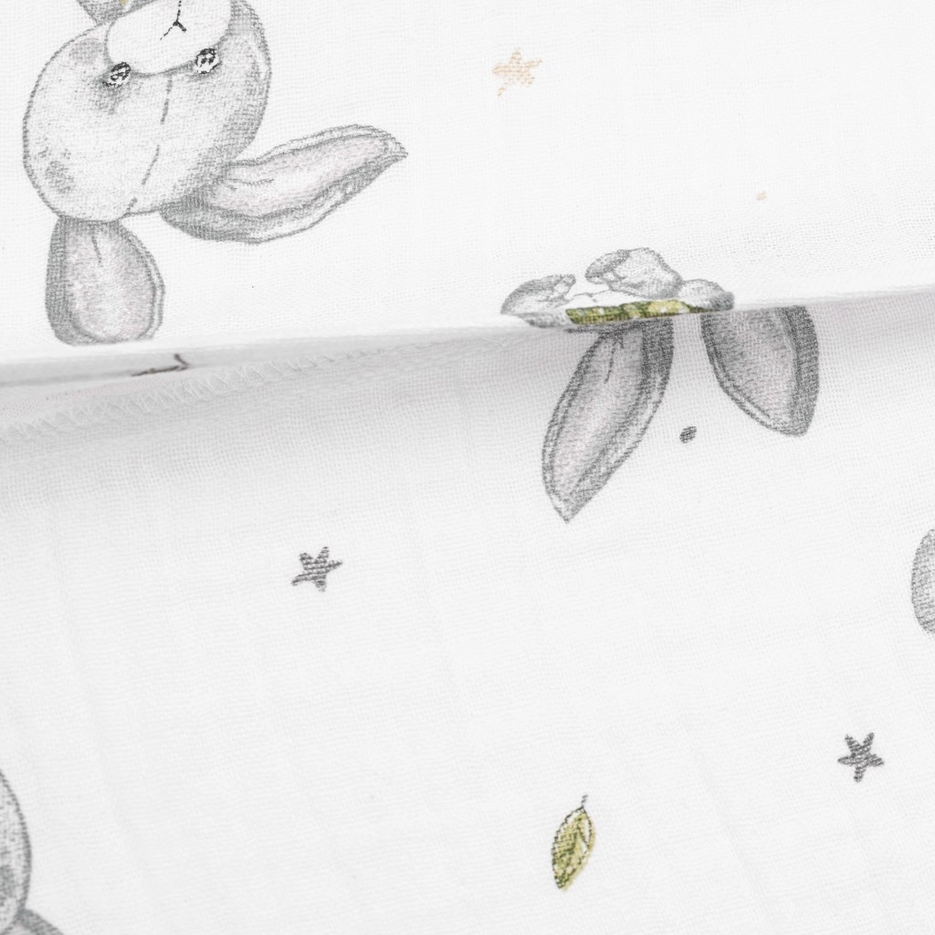 Štýlový a funkčný obliečok NEW BABY z jemného bavlneného mušelínu zaistí bábätku pokojný a komfortný spánok. Materiál je mimoriadne mäkký, vzdušný a príjemný na dotyk, ideálny aj pre najmenšie deti. Moderný dizajn s roztomilým motívom Bunny skvele zapadne do každého detského izbičky.