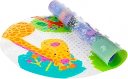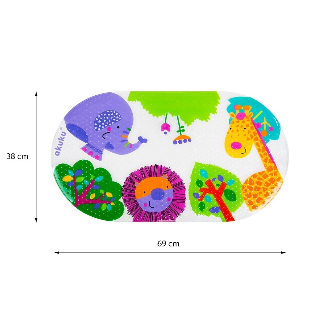 Podložka Akuku je navrhnutá pre detské vaničky, klasické vane aj sprchové kúty. Desiatky prísaviek na spodnej strane držia pevne na hladkom povrchu, zatiaľ čo štruktúrovaný povrch pomáha predchádzať pošmyknutiu. Materiál z vysoko kvalitného PVC neobsahuje ftaláty a je príjemne pružný.