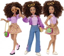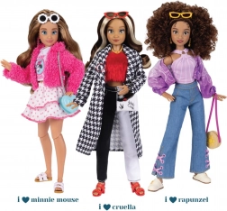 Bábika má kučeravé hnedé vlasy ideálne na česanie a styling. V sade nájdete 2 kompletné vzhľady vrátane topov, mikiny/svetra, džínsov, sukne, dvoch párov topánok, kabeliek a šperkov. Dôraz na detaily s motívmi z rozprávky Na vlásku a ikonickými prvkami MICKEY dodáva setu originálny vzhľad.