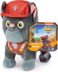Plyšák Charger je energický francúzsky buldoček zo série PAW Patrol: Rubble & Crew, kde pomáha s prepravou ťažkých nákladov. Táto kvalitne spracovaná hračka od spoločnosti Spin Master verne zachytáva jeho vzhľad – od červenej prilby a vesty s reflexnými prvkami až po jemnú šedo-striebornú srsť a veľké vyšívané oči.