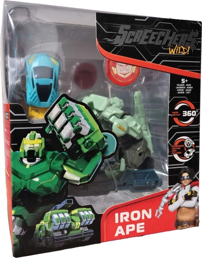 Vrhnite sa do akcie so sadou Screechers Wild! – transformujúcou figúrkou IRON APE, ktorá sa v okamihu premení z opice na rýchle zelené auto. Vďaka pohyblivým prvkom, výraznému dizajnu a priloženej energetickej minci čaká deti od 5 rokov kopec dynamických súbojov a zábavy.