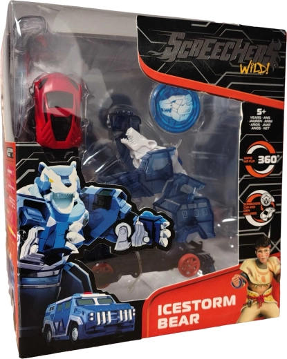 S transformujúcim setom Screechers Wild! Icestorm Bear sa deti ponoria do dynamických naháňačiek v Zephyr City. V okamihu sa medveď premení na rýchle modré auto, pripravené získať energetické mince skôr než protivníci. Realistické pohyblivé diely a efektné spracovanie podporujú kreatívnu hru a rozvoj fantázie.