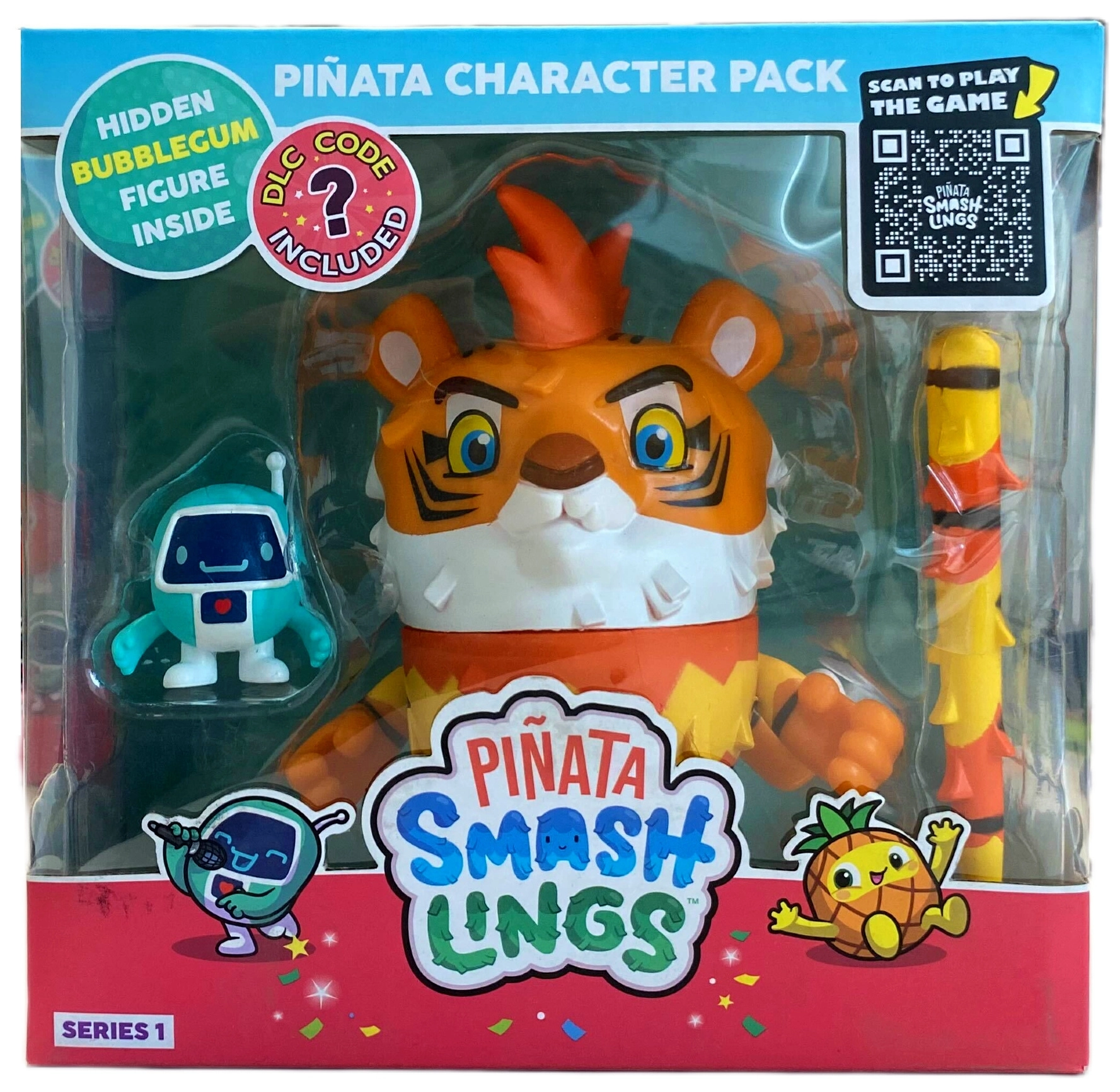 Objavte tropický Piñataverse, kde sa z farebných piniát rodia energické Smashlings! Sada s tigrí pinjatou Mo prináša veľkú figúrku piniaty (cca 11,5–12 cm) s prekvapením vo vnútri, 2 mini figúrky a štýlové príslušenstvo – paličku inšpirovanú hrou. Vďaka kódu DLC si rozšírite zážitok aj vo svete digitálnych odmien.