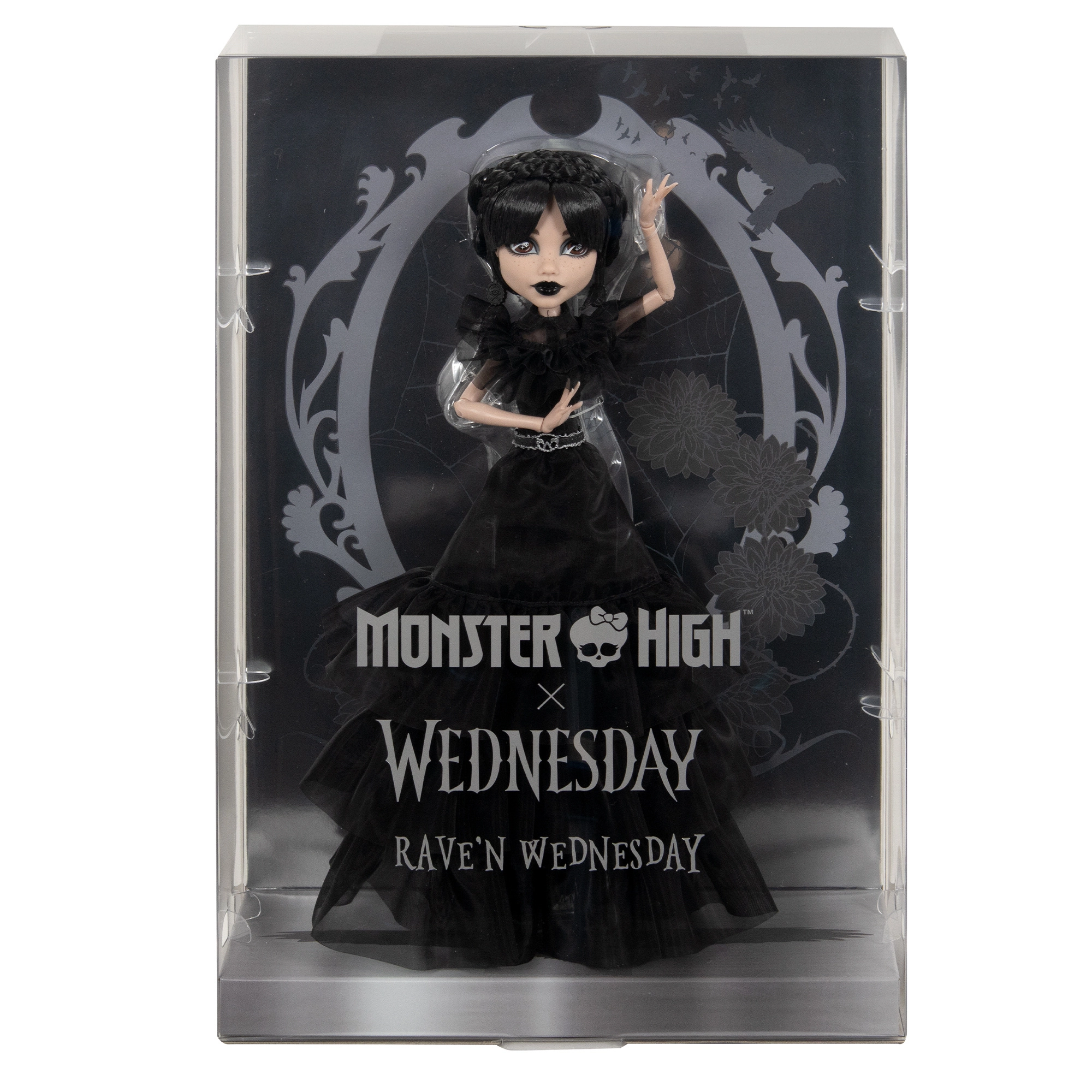 Táto zberateľská bábika WEDNESDAY ADDAMS z radu Monster High prináša verné stvárnenie obľúbenej hrdinky. Dlhé čierne vrkoče, bledá pleť a prenikavý pohľad dopĺňa dramatická čierna tylová róba s bohatými volánmi a stojan na bezpečné vystavenie vo vitríne.