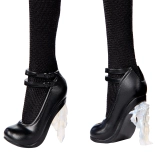 Prepracované doplnky, ako strieborný opasok, náušnice a lodičky s kryštalickými opätkami, podčiarkujú gotický štýl a robia z bábiky výrazný kúsok do každej zbierky. Vďaka kĺbovým rukám a nohám ľahko zaujme rôzne pózy – ideálne na fotenie aj expozíciu.