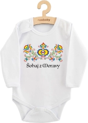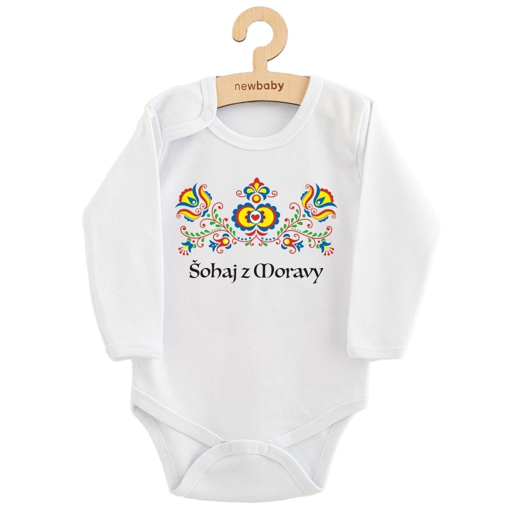 Štýlové detské body s dlhým rukávom a folklórnym motívom „Šohaj z Moravy“ od značky New Baby spája tradíciu a moderný dizajn. Vyrobené zo 100 % bavlny pre jemnosť a priedušnosť, so snadným zapínaním na patentky na ramienku a medzi nožičkami. Certifikované farby vhodné pre bábätká a materiál s OEKO-TEX Standard 100 pre bezpečie aj pohodlie každý deň.