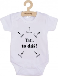 Hľadáte body, ktoré je jemné k pokožke a zároveň praktické? Toto detské body NEW BABY je ušité zo 100% mäkkej a priedušnej bavlny, ktorá zaistí bábätku komfort po celý deň. Originálna potlač „Tati, to dáš!“ dodá outfitu hravý nádych a poteší každého ocka.