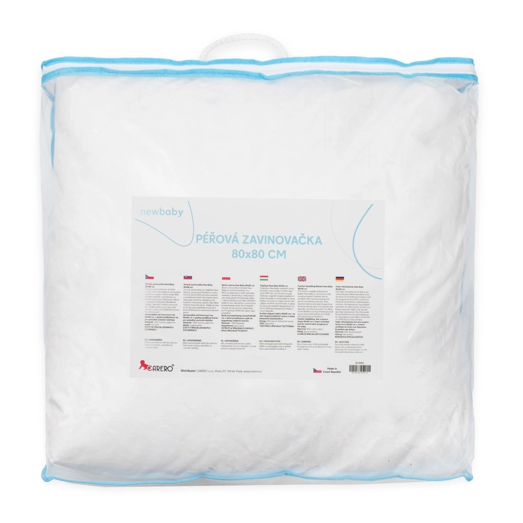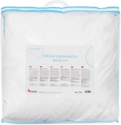 Táto luxusná perová zavinovačka s rozmerom 80 × 80 cm je navrhnutá pre bezpečné a pohodlné zabalenie novorodenca. Vďaka špeciálne čistenému a testovanému periu udržiava príjemné teplo bez prehriatia a poskytuje bábätku pocit istoty. Možno ju využiť aj ako ľahký perový prehoz.