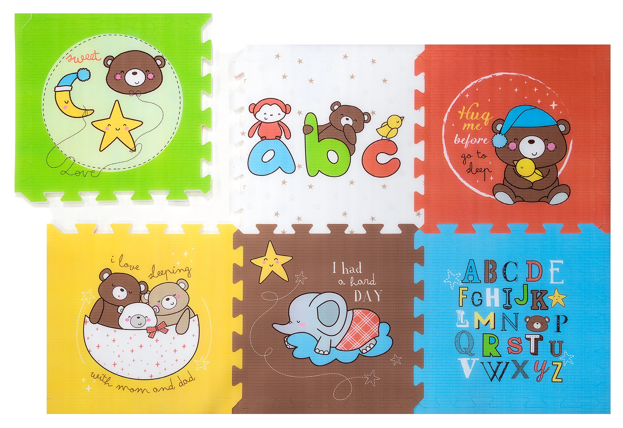 Veľkoformátové puzzle diely s milými ilustráciami zvieratiek a abecedou (bez špeciálnych diakritických znakov) rozvíjajú predstavivosť a podporujú rané učenie. Podložka sa ľahko udržiava – stačí utrieť vlhkou handričkou. Diely sú jednostranné; spodná strana môže mať výrobné nerovnosti, ktoré neovplyvňujú funkciu.