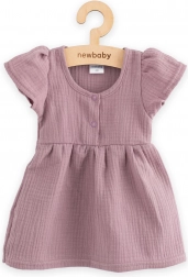 Mušelínové šaty New Baby v jemnom levanduľovom odtieni sú skvelou voľbou na teplé dni. Vďaka strihu do A a nariasenej sukničke pôsobia rozkošne a zároveň poskytujú voľnosť pohybu. Predné zapínanie uľahčuje rýchle prezliekanie bez zbytočného stresu.