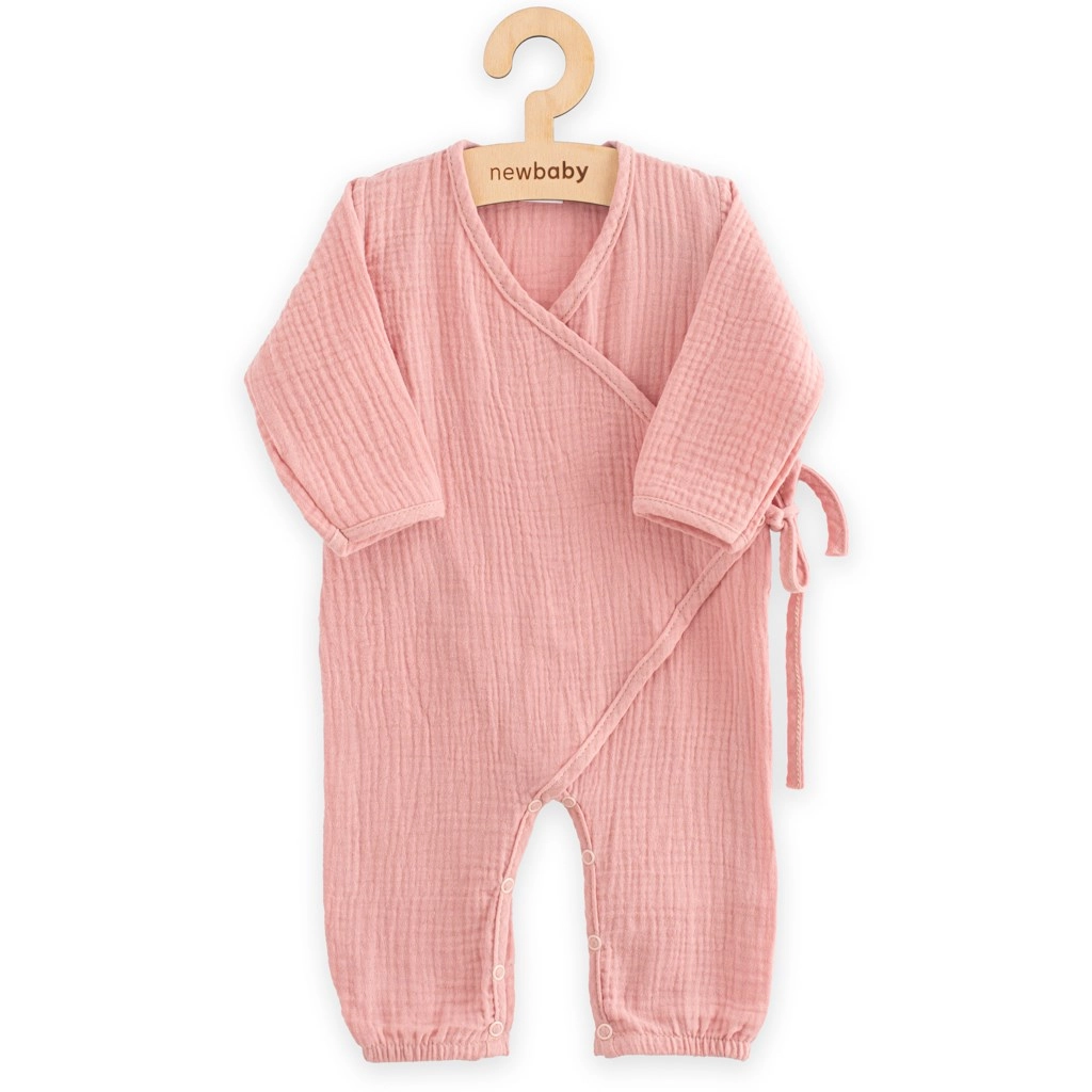 Ľahký a vzdušný mušelínový overal NEW BABY je ideálnou voľbou pre každodenné pohodlie bábätka. Zavinovací strih s bočným zaväzovaním, vnútorným drukom a cvočkami medzi nožičkami uľahčuje obliekanie aj prebaľovanie. Jemné gumičky na nohaviciach držia tvar, ale netlačia.